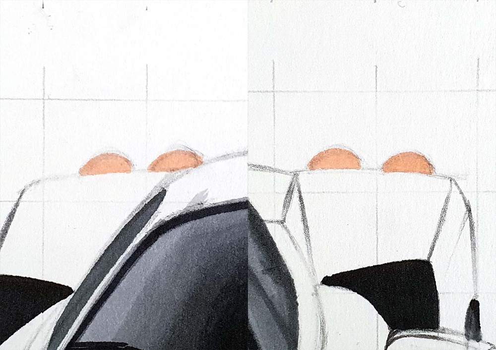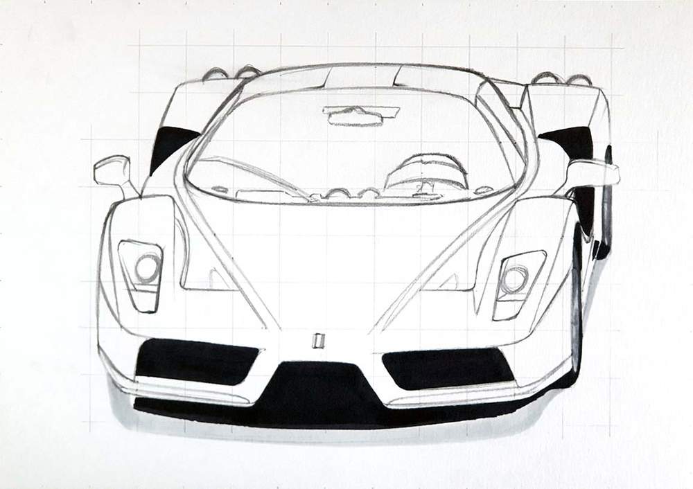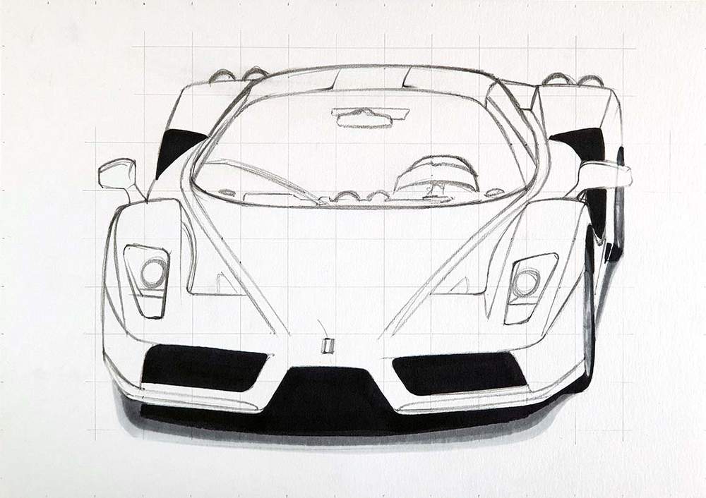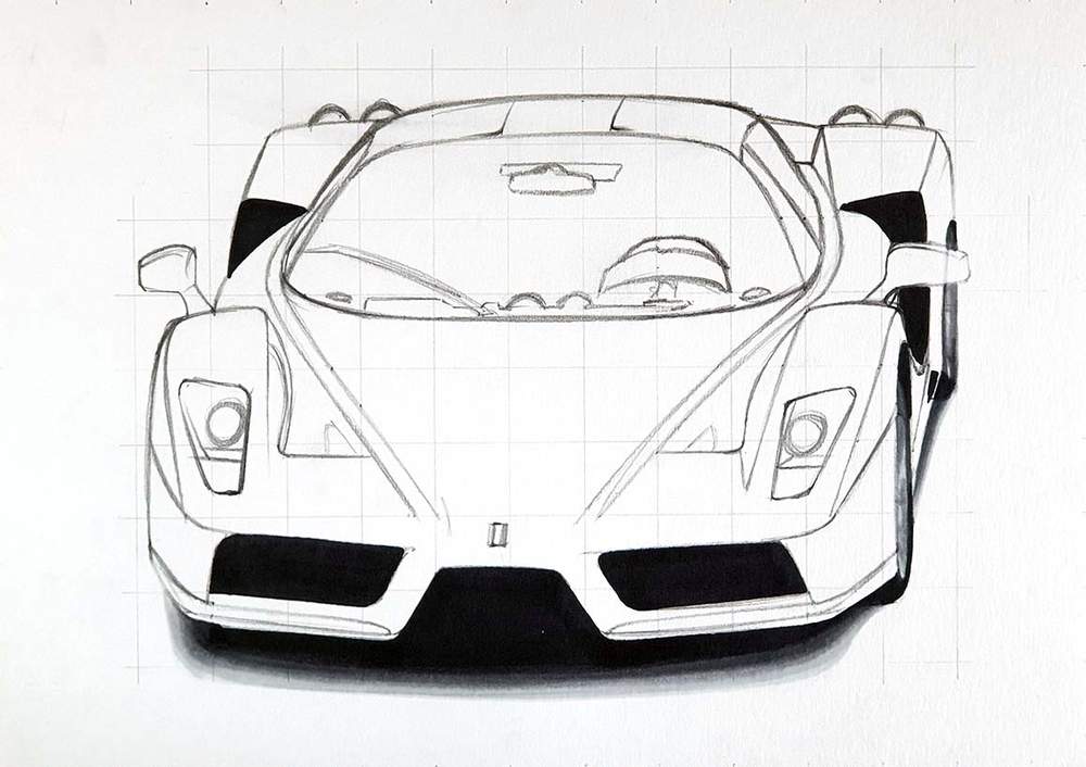 Sketching a car can be difficult, that's why I like to use the grid method.