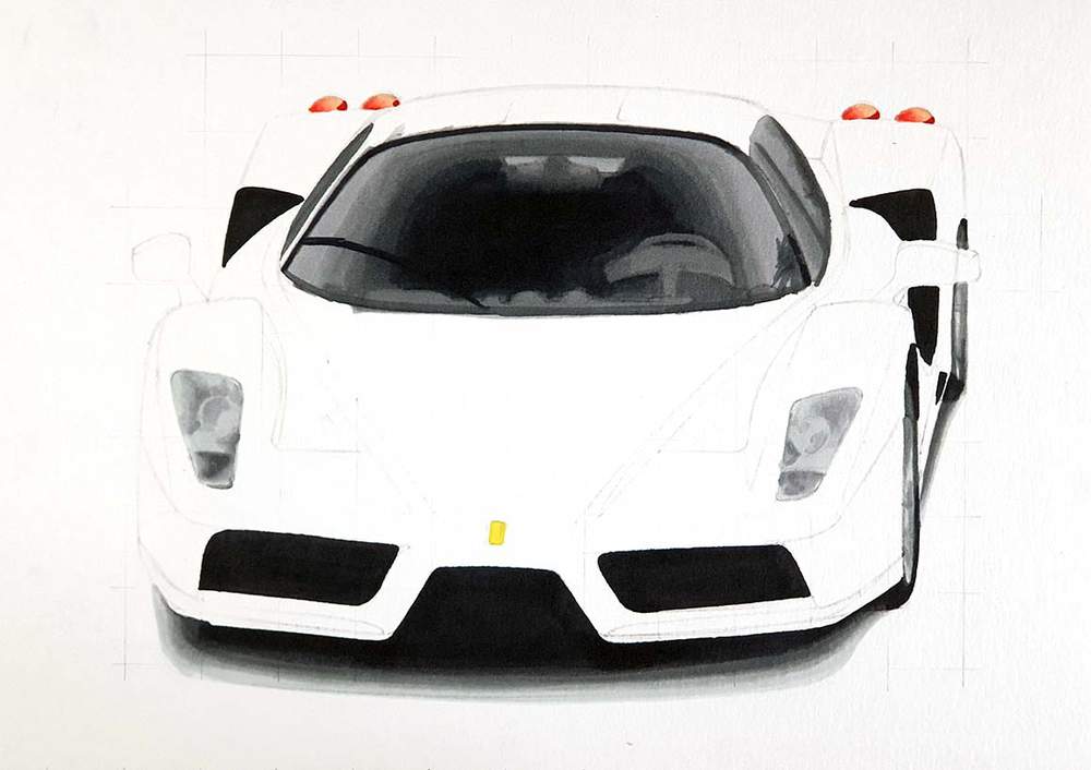 To make this drawing of the Ferraro Enzo, I used 2 reference photos.