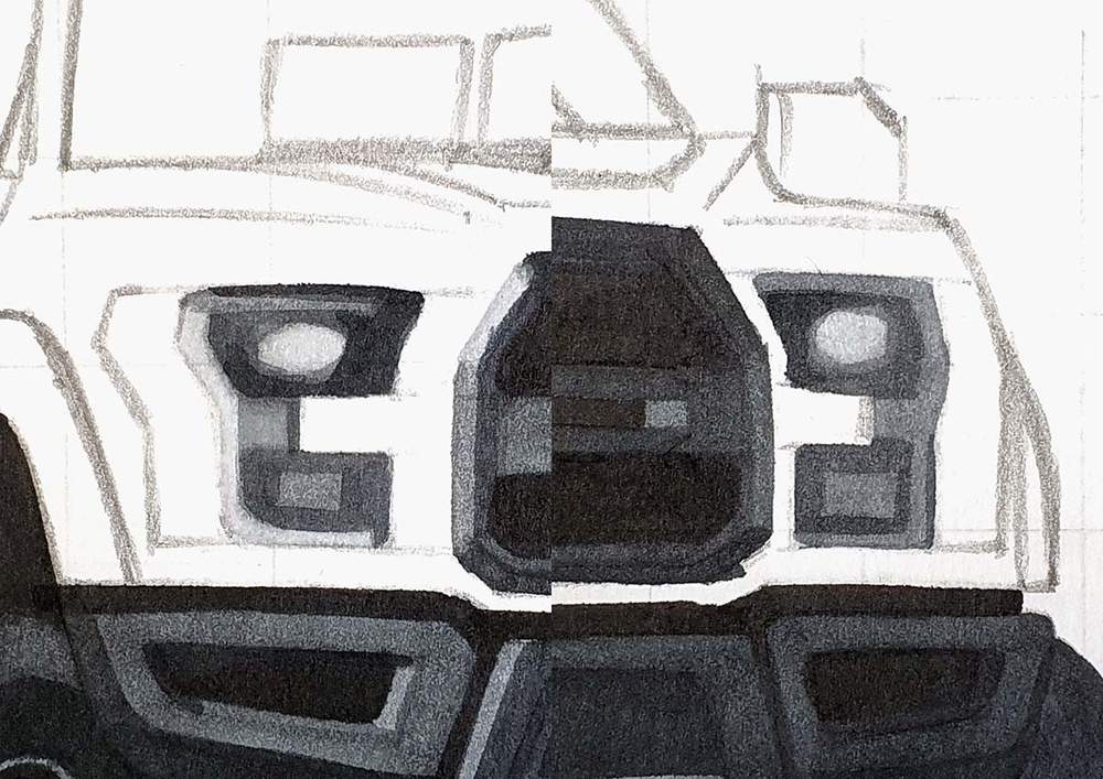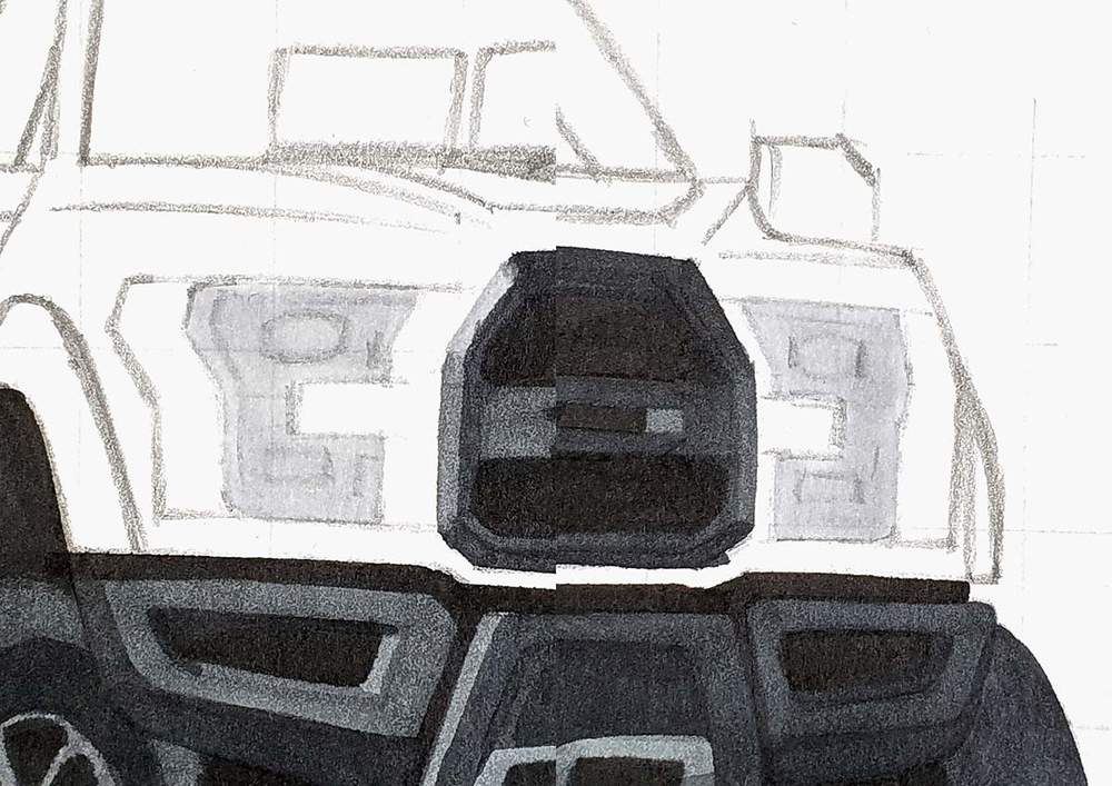 Lastly, I added some dark lines between the different parts of the bumper and added some shadow to the bottom edges of the side pieces on the bumper. To do this I used NG07.