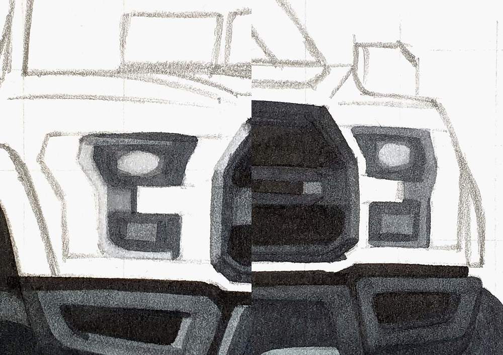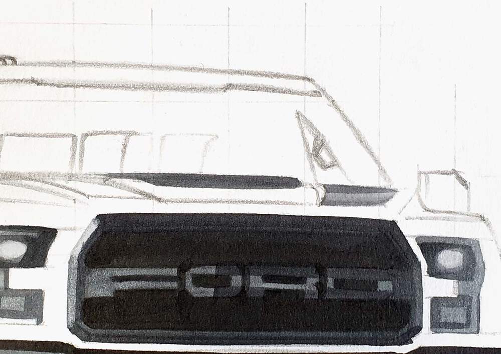After that, I created a sketch of the outline of the Ford using the grid method.