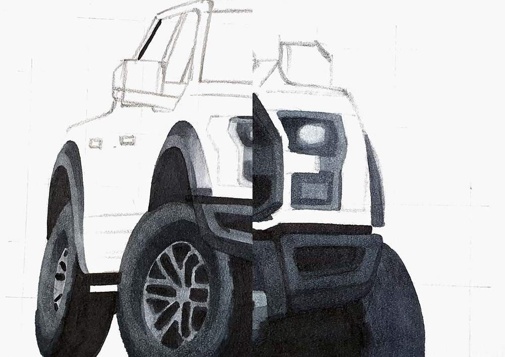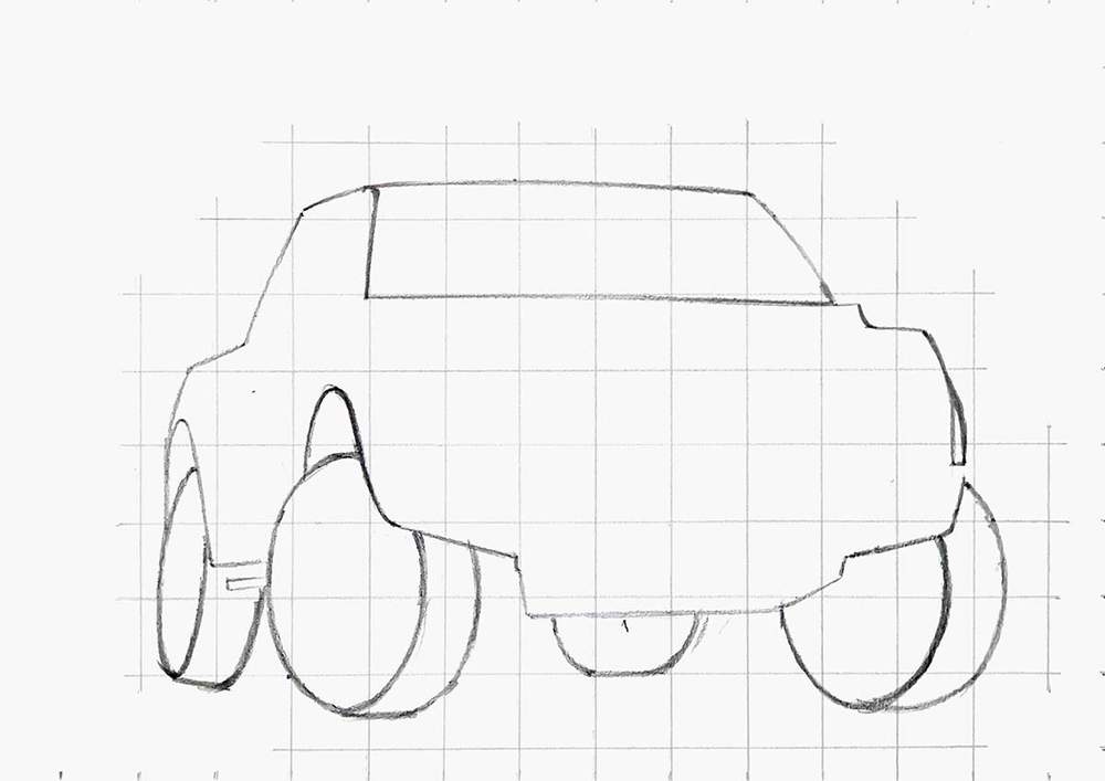 Next, I sketched the full outline of the car.