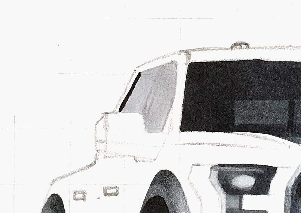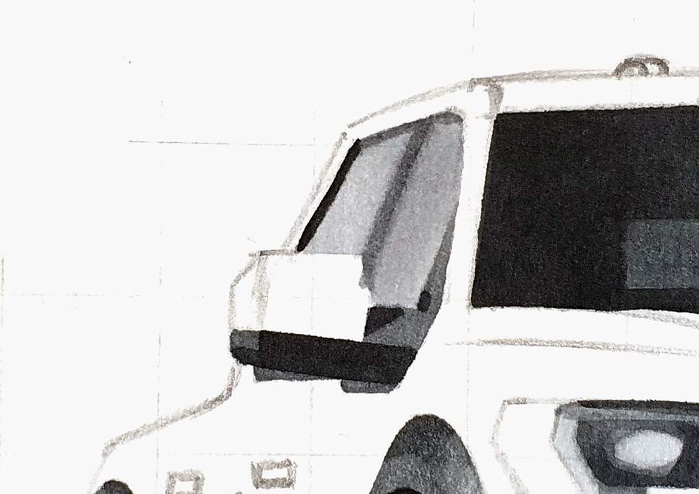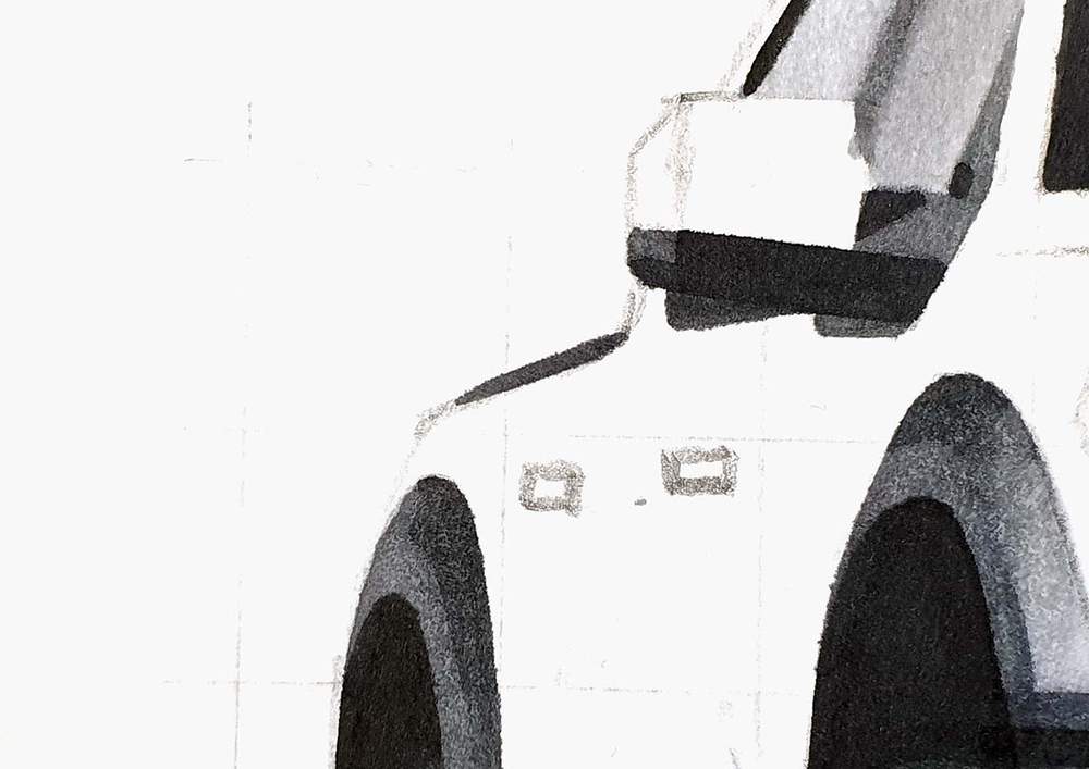 I used the black pencil to add panel gaps to the car. Normally I would also color the door gaps, but I forgot to do so...