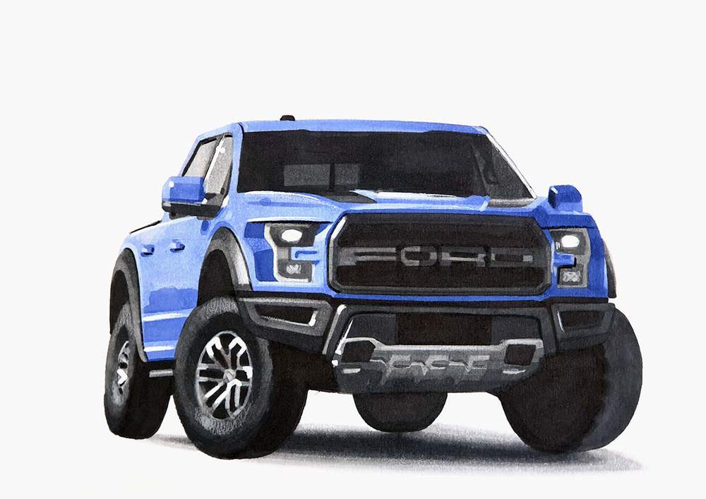 To make a realistic drawing of a Ford F-150 Raptor, I first looked for a reference photo I liked.