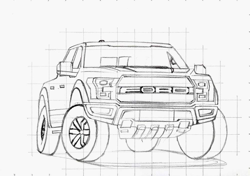 Step 3: Sketch The Outline Of The Ford Raptor