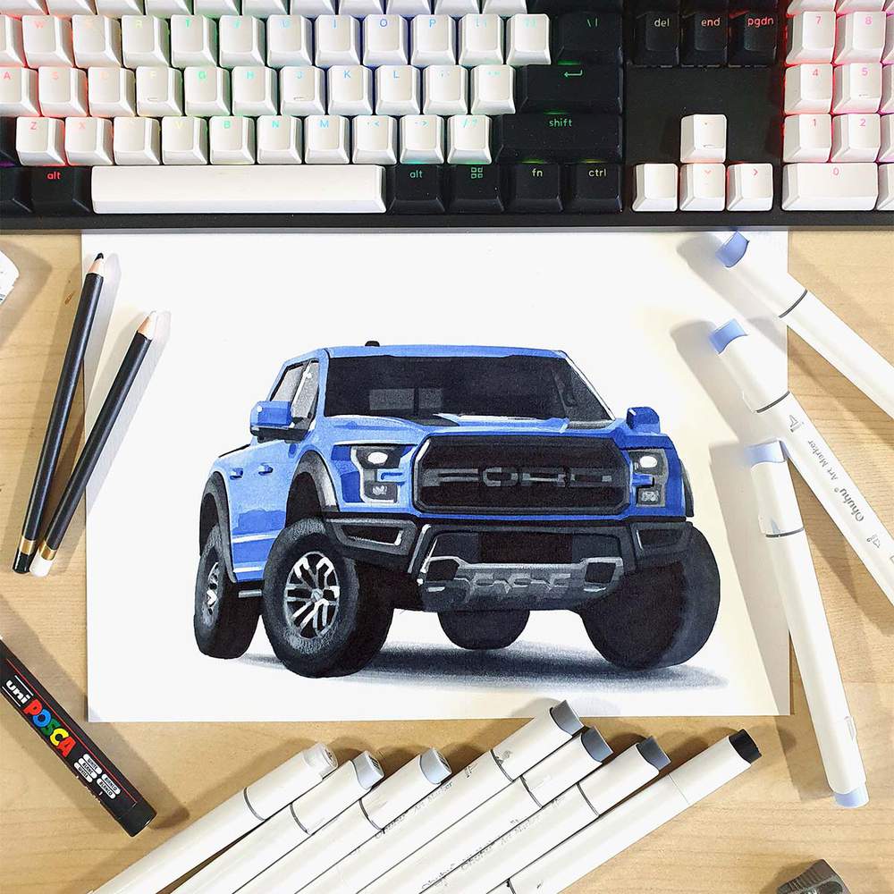 I've broken everything up into simple, easy-to-follow steps, so you can easily follow along with me on this Ford Raptor drawing.