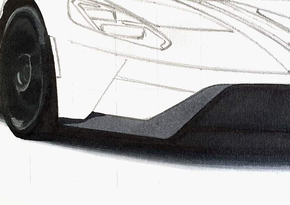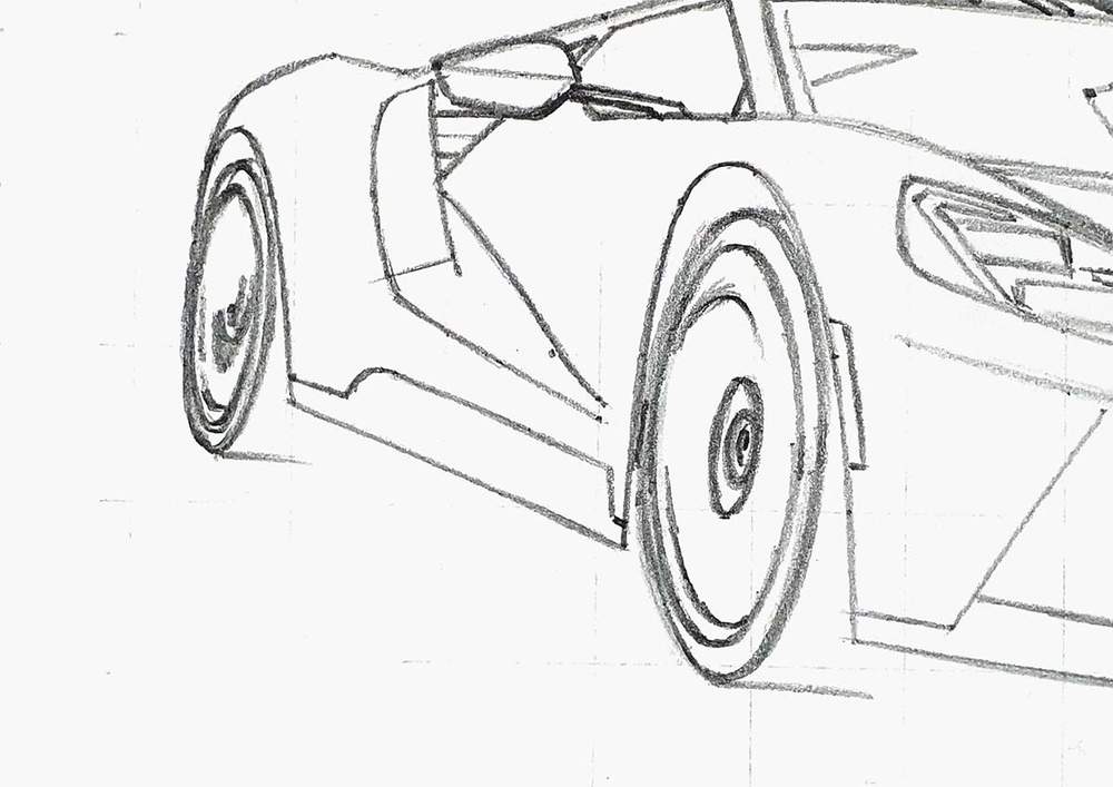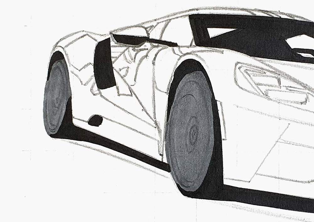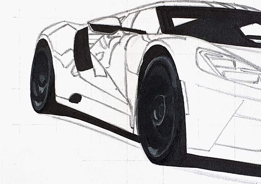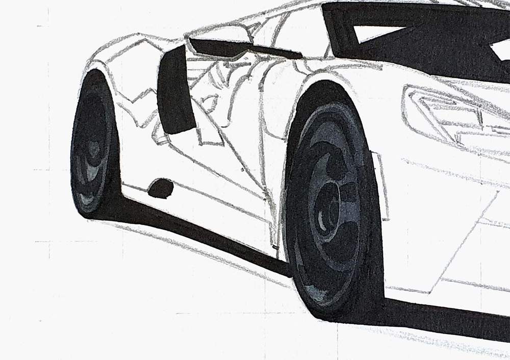 Now only the wheels are left to sketch, and as the Ford GT is driving on a road, they are a lot simpler.