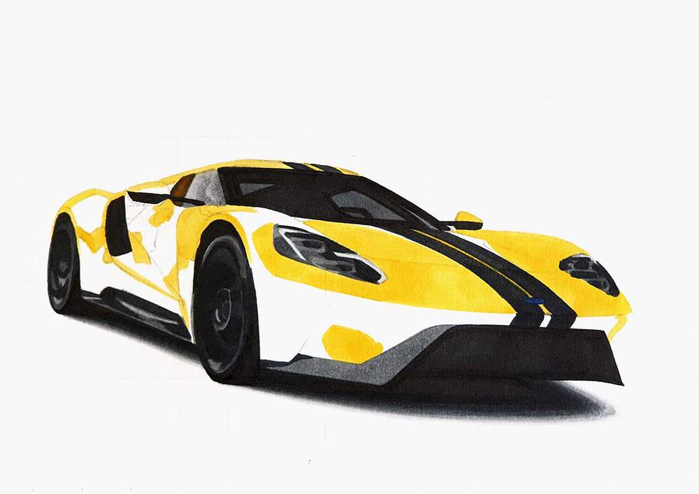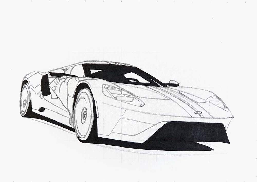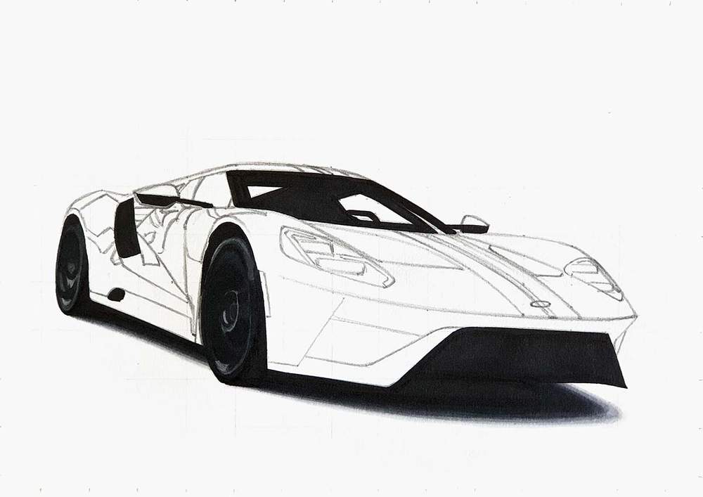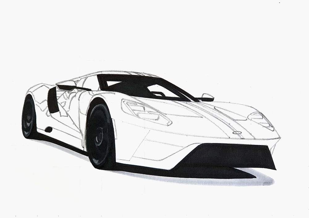 With the outline in place, it's a lot easier to sketch all the parts of the Ford GT.