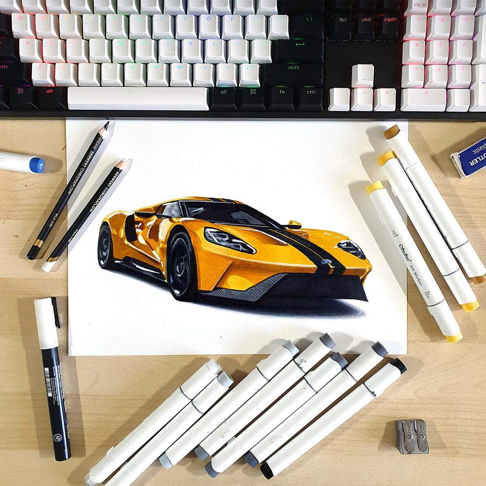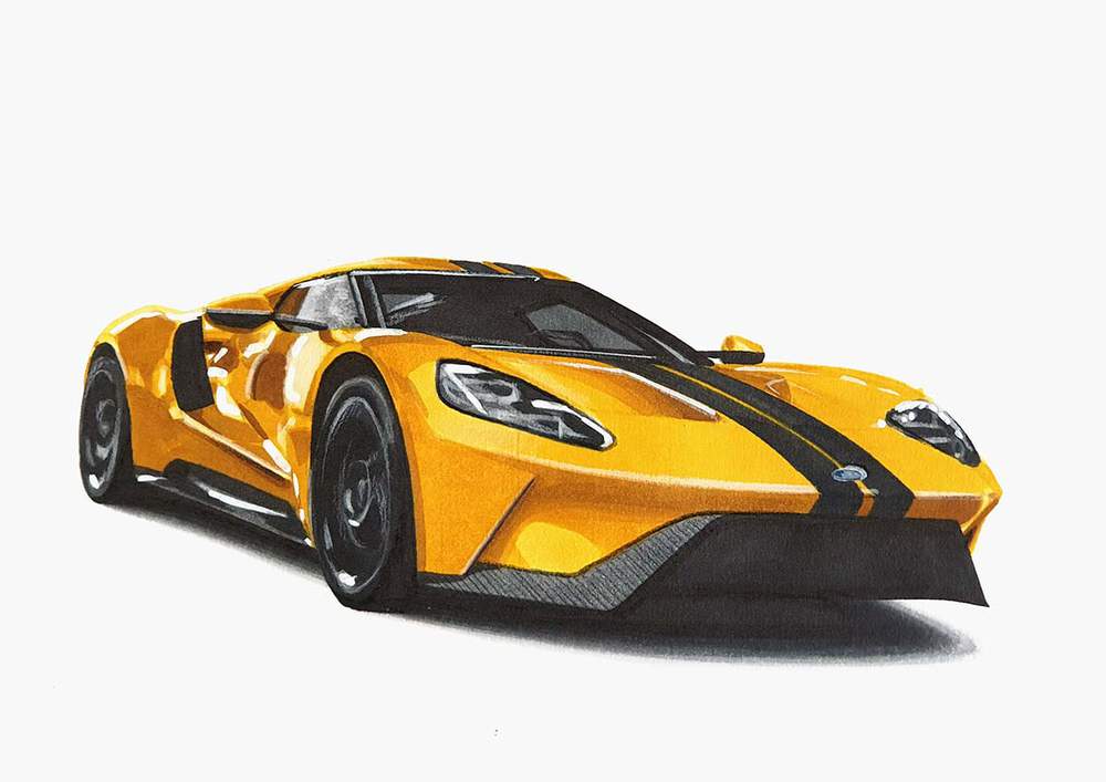 To make a realistic drawing of a Ford GT, I first looked for a reference photo I liked.