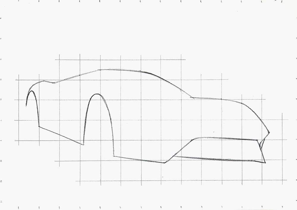 To do this, I look at the reference photo and look for harsh lines on the body work of the car and where they are positioned in relation to the grid lines.