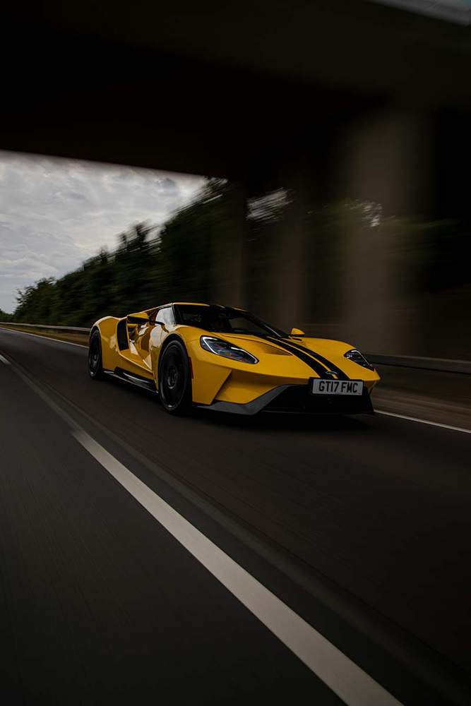 I find this beautiful photo of a Ford GT driving on the road on Pexels.com: