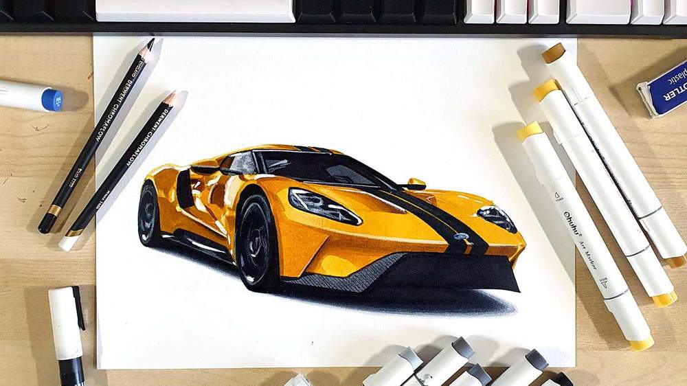 In this car drawing tutorial, I'm going to show you how to draw a Ford GT.