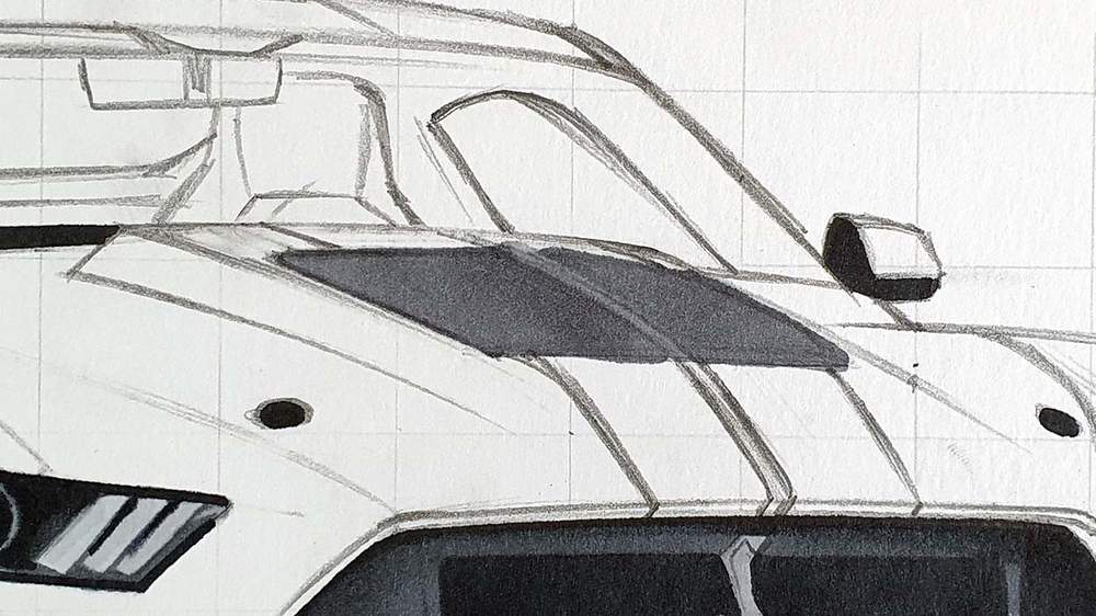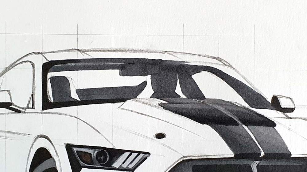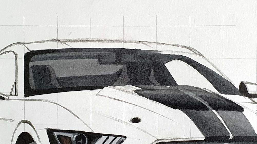 Now that the grid is in place, it's time to sketch the basic shape of the GT500.