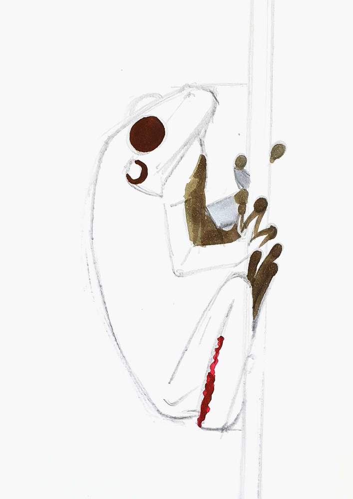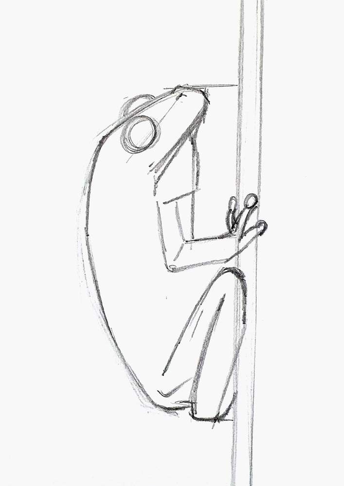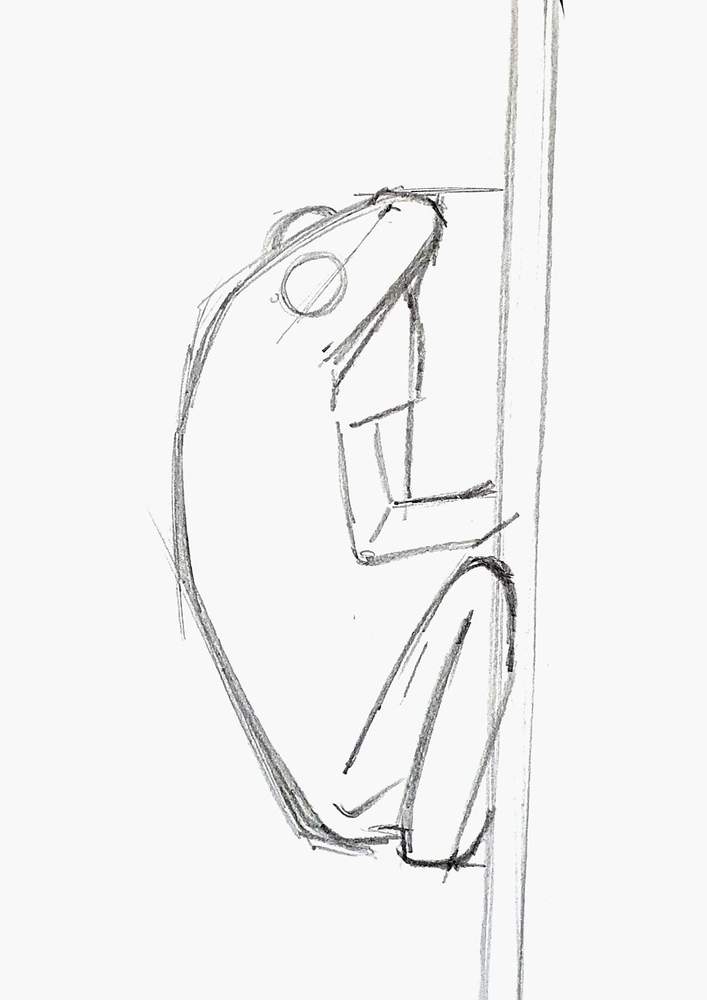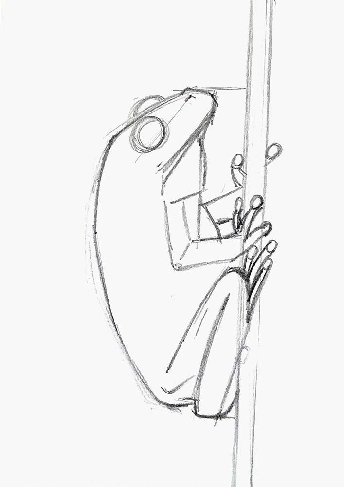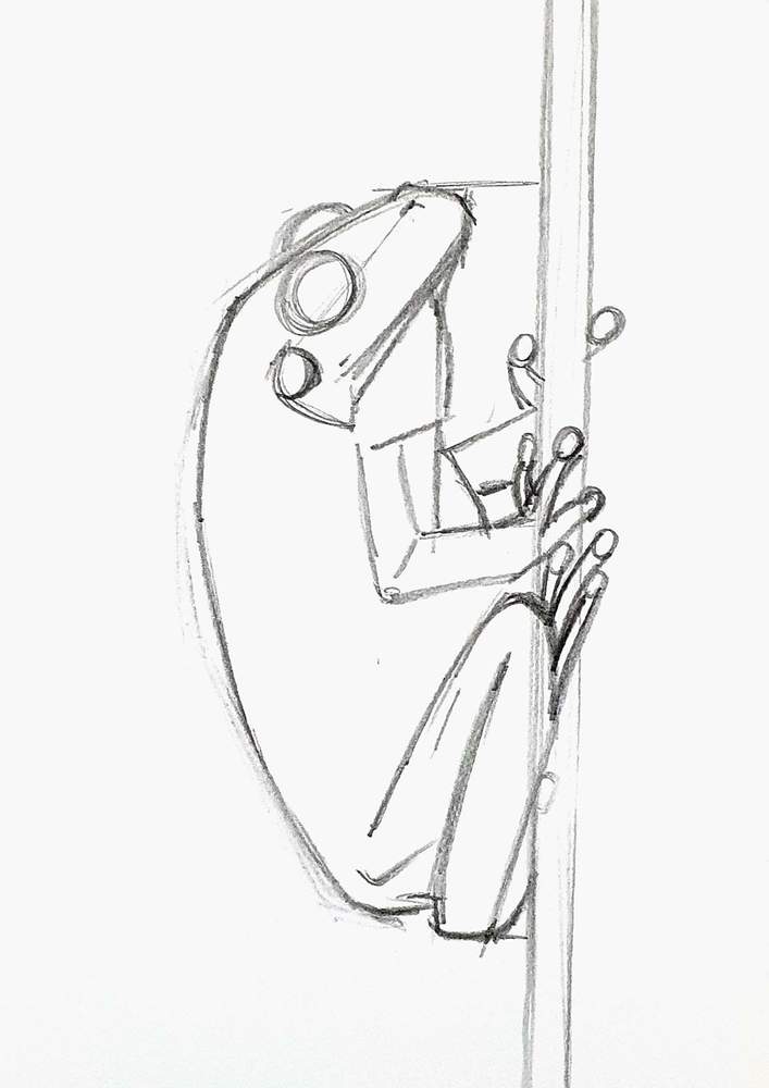 Next, I sketched the front leg and the frog's eyes. The left eye sticks out a bit above his head.
