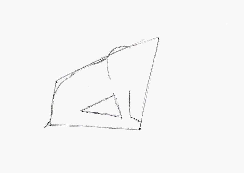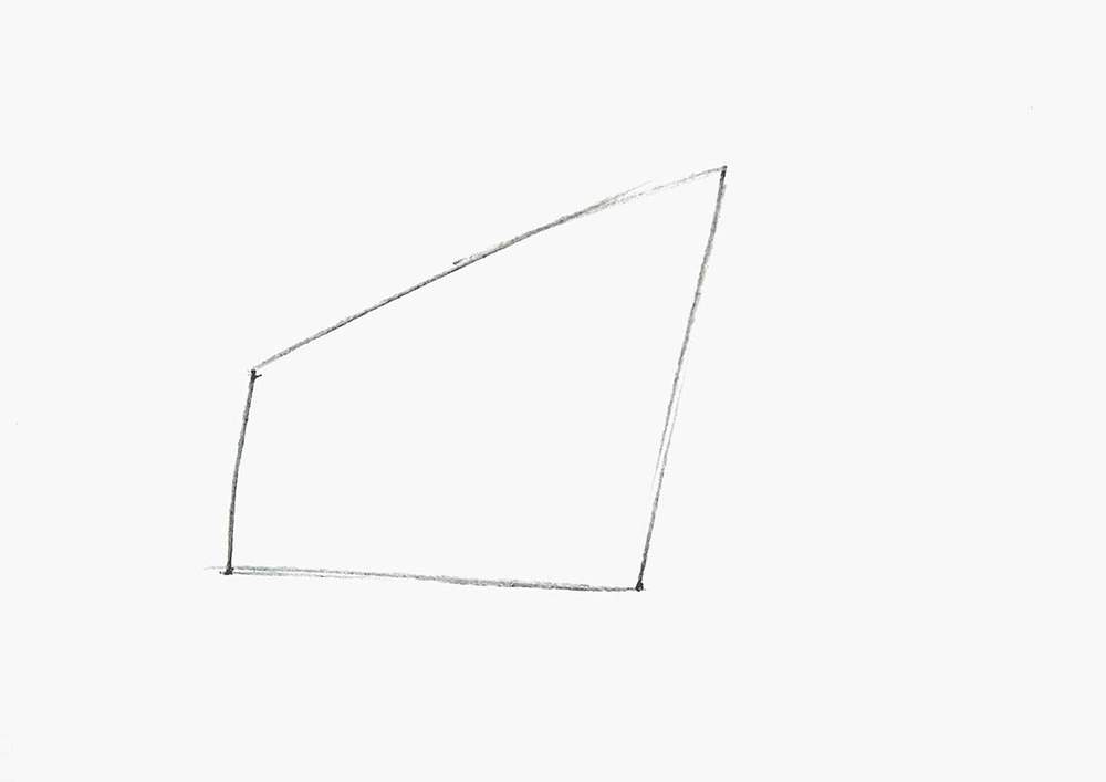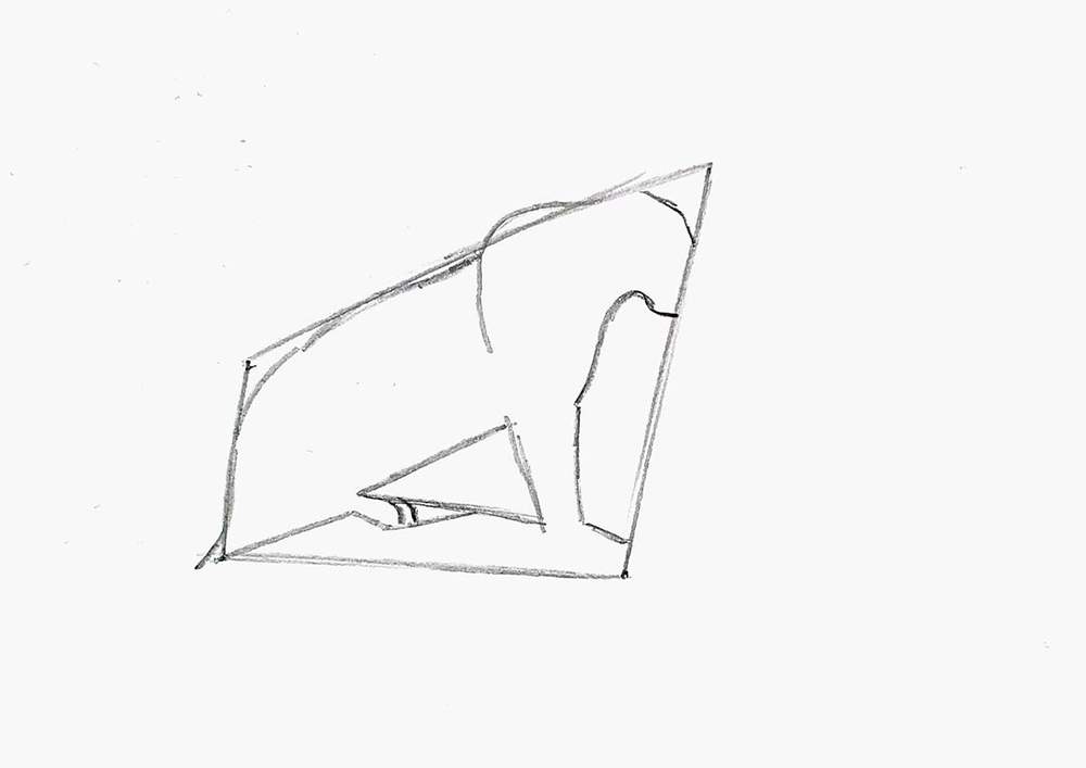 I sketched the back of the jaguar from the shoulder to the tail. And I sketched a triangle with a hockey stick shape to the right of it.