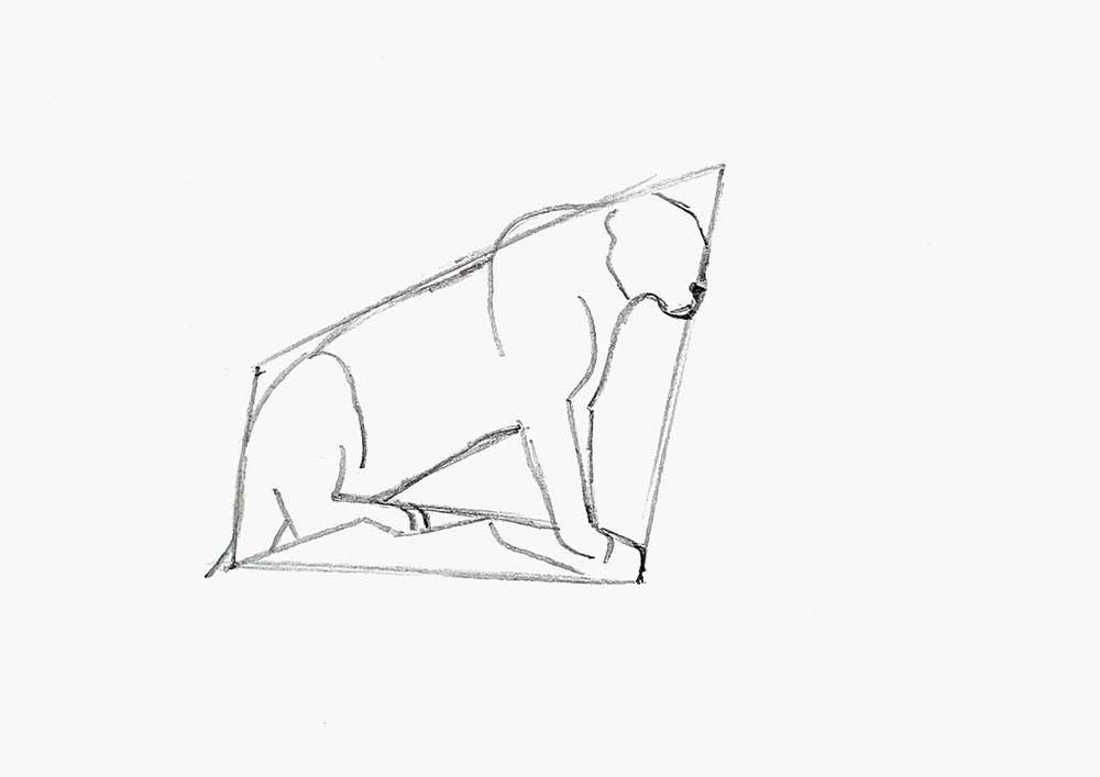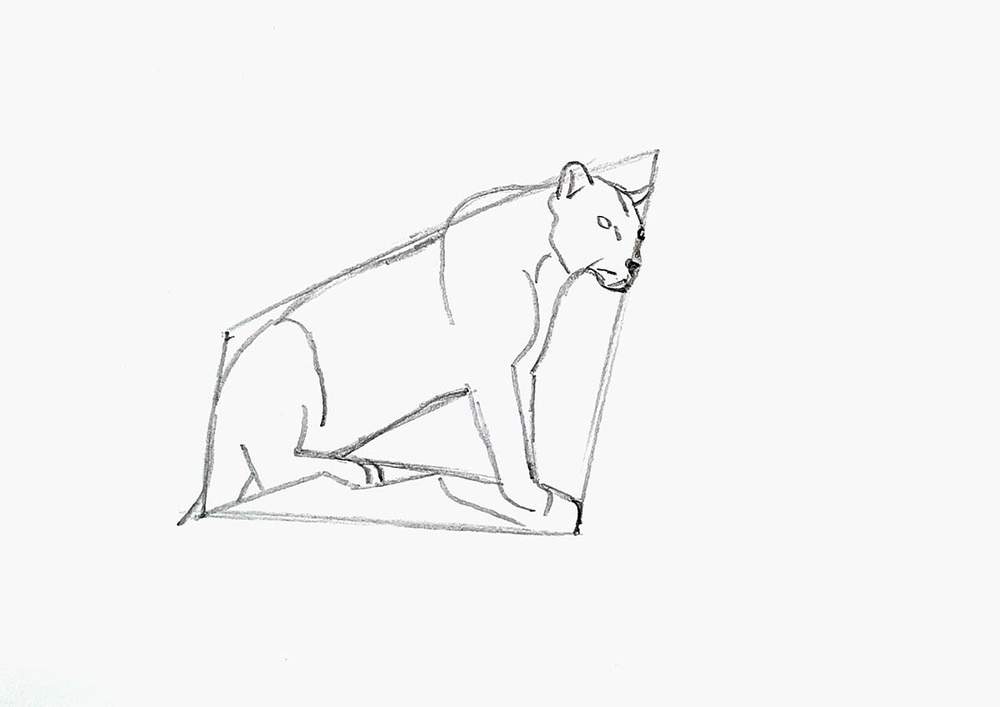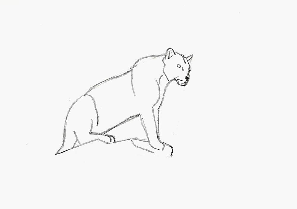 To sketch the outline of the jaguar, I first drew a construction shape where the whole body of the jaguar fits into.
