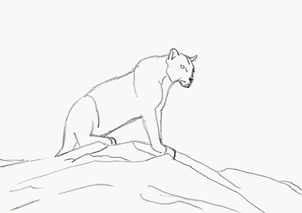 Step 4: Sketch The Rocky Terrain Where The Jaguar Is Sitting On