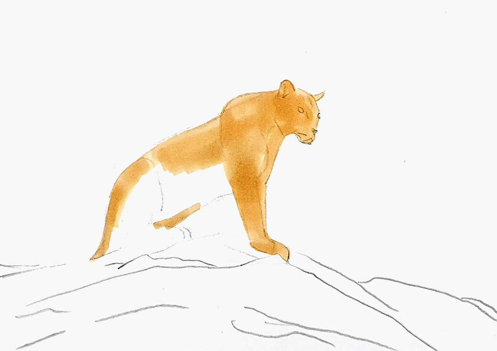I also started sketching the rocky terrain the jaguar is sitting on.