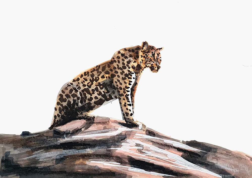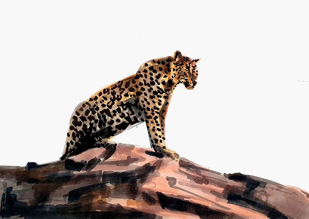 To finish the jaguar drawing, I used my white Posca PC-3M paint marker to add some final highlights on the jaguar's leg as well as the lighter parts of the rocky terrain.