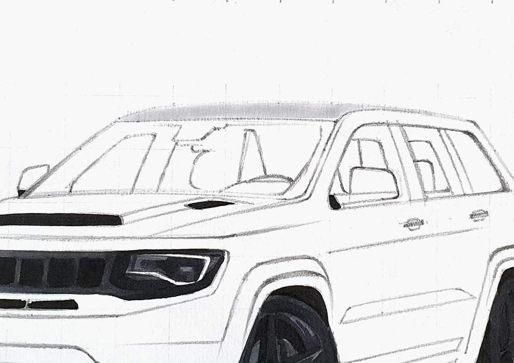 Step 3: Sketch The Outline Of The Jeep Grand Cherokee Trackhawk