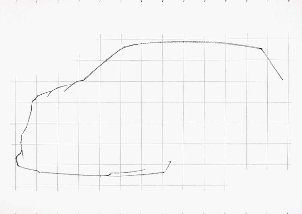 I broke the outer edge of the car up into simple lines. For each line, I marked where it starts and ends, and where it crosses grid lines. than, I sketched the line in one smooth motion.