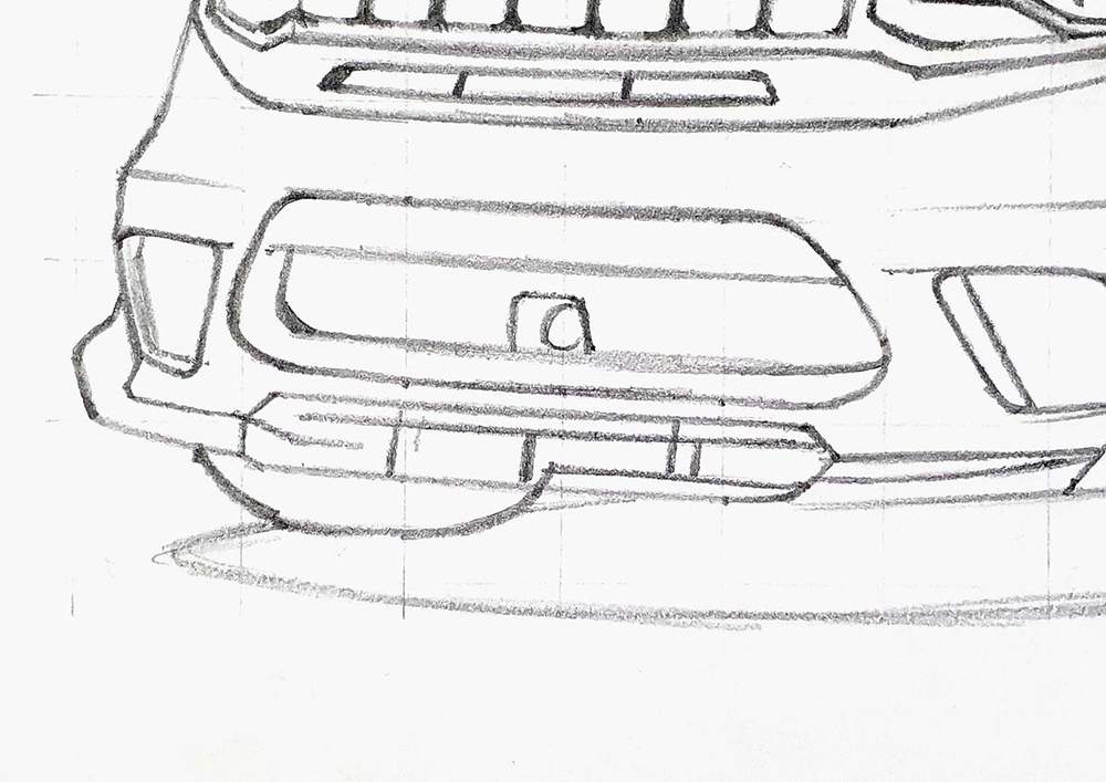 I also forgot to sketch the details in the lower grill and the splitter, but we'll get to those in the next step as well.