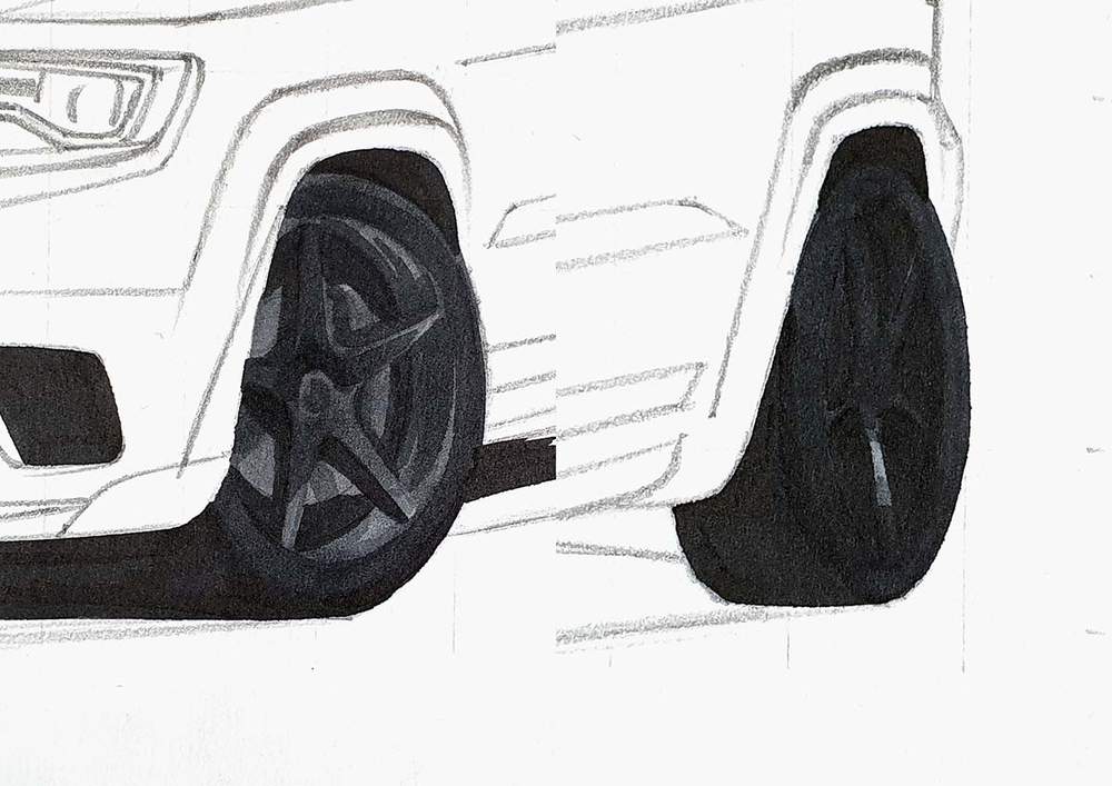 Step 5: Sketch The Wheels Of The Jeep Trackhawk