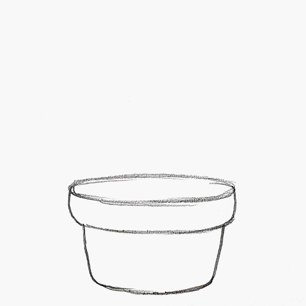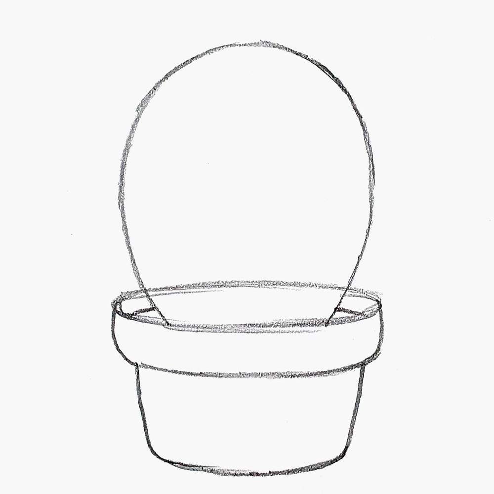 I started by drawing a slightly curved oval near the middle of my page to create the top edge of the pot. This gives it a 3D look.