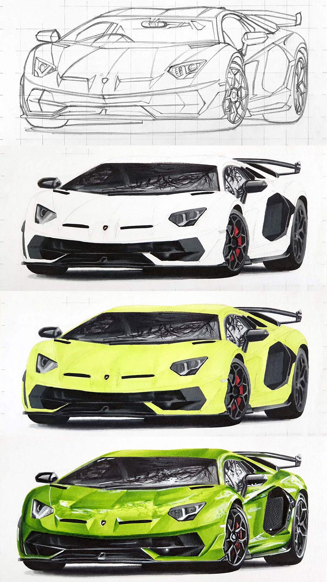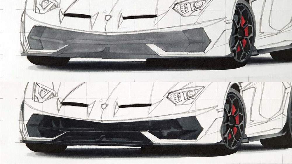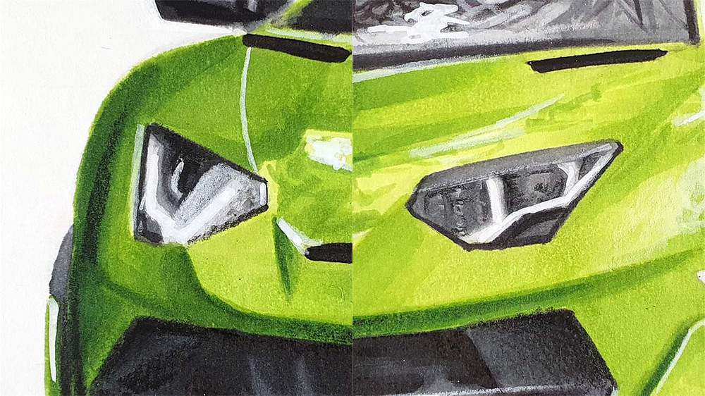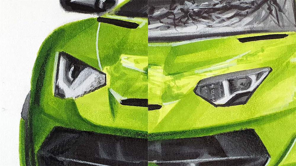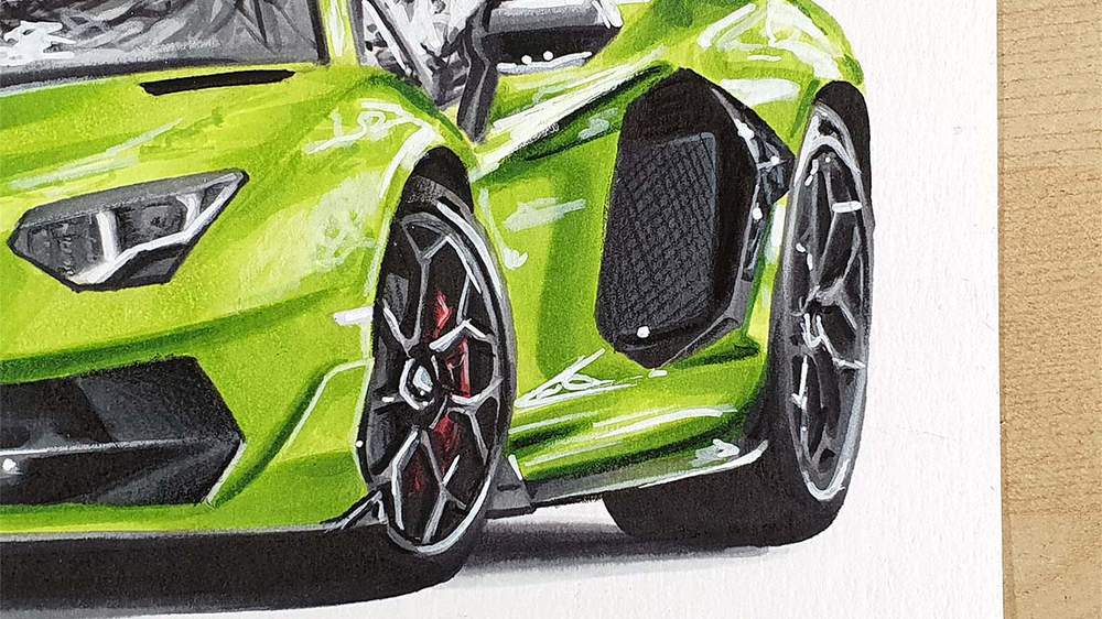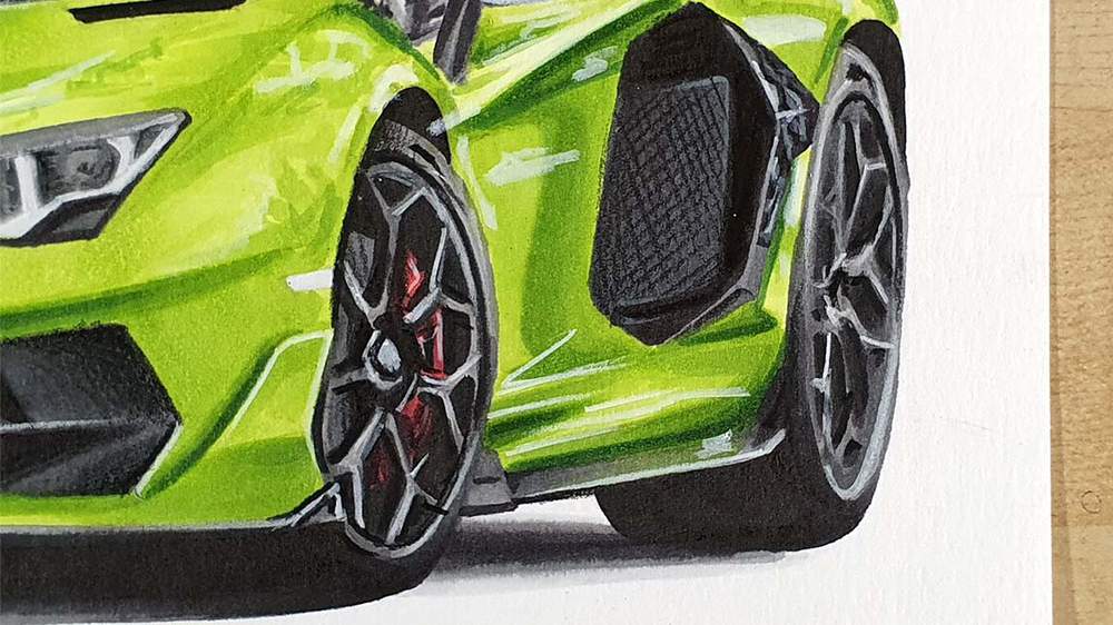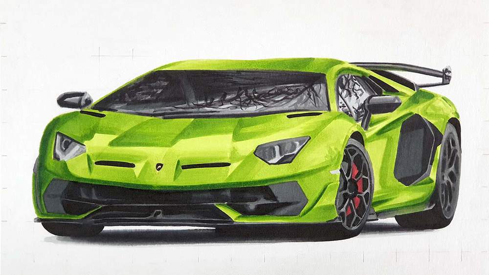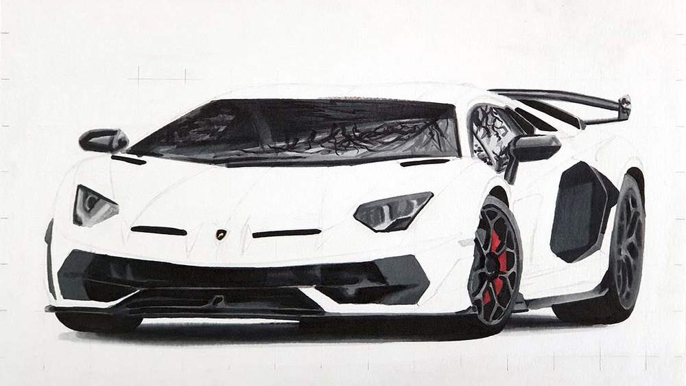 In this step-by-step car drawing tutorial, I'll show you how I made this drawing of a Lamborghini Aventador SVJ with some beautiful reflections.