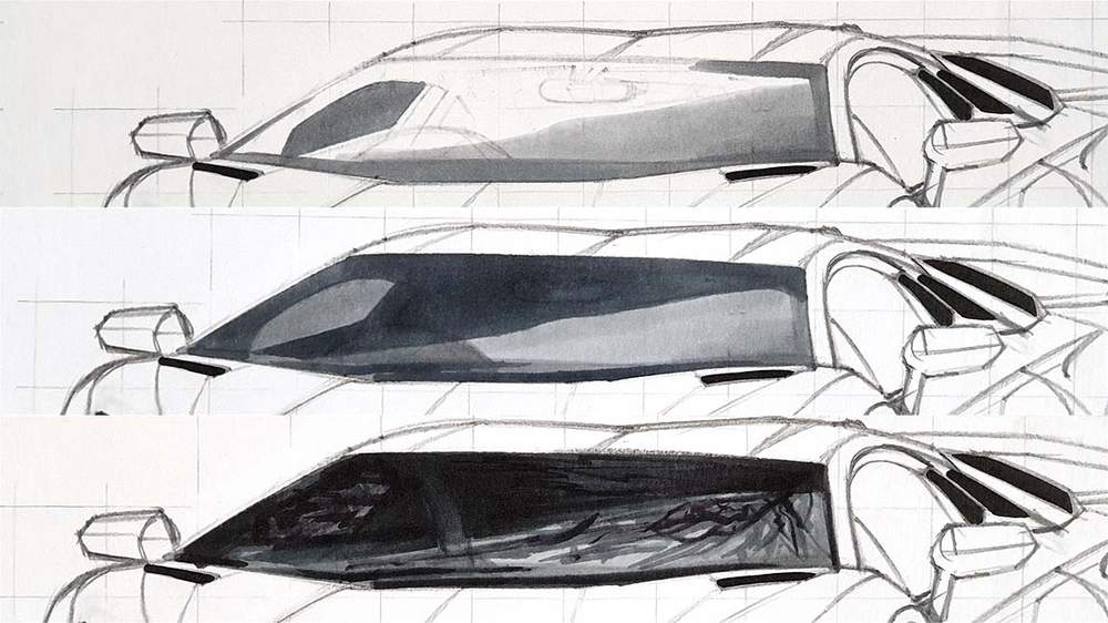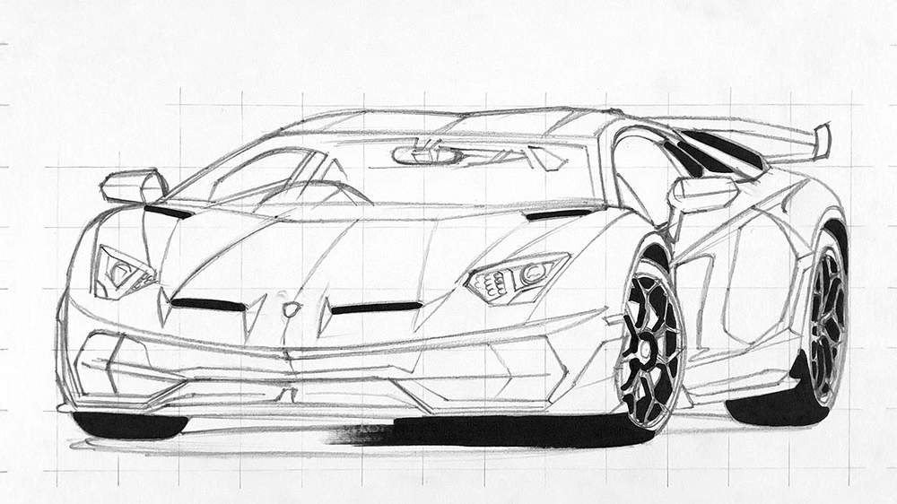 Step 1: Sketch the Lamborghini Aventador SVJ