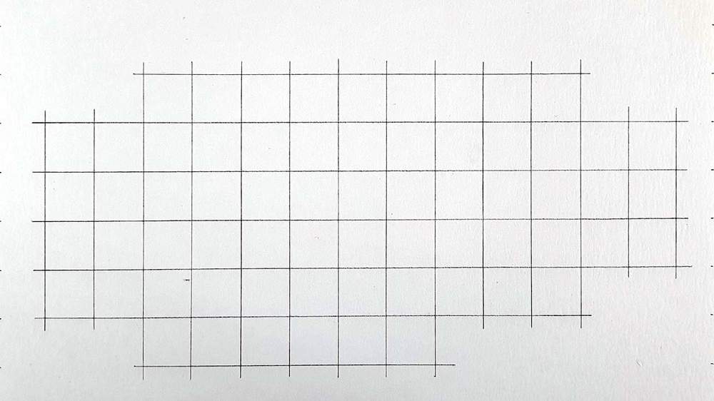 Next, I recreated that grid on my paper, but I only sketched the squares I'd actually need for the sketch.
