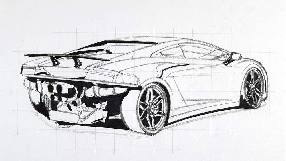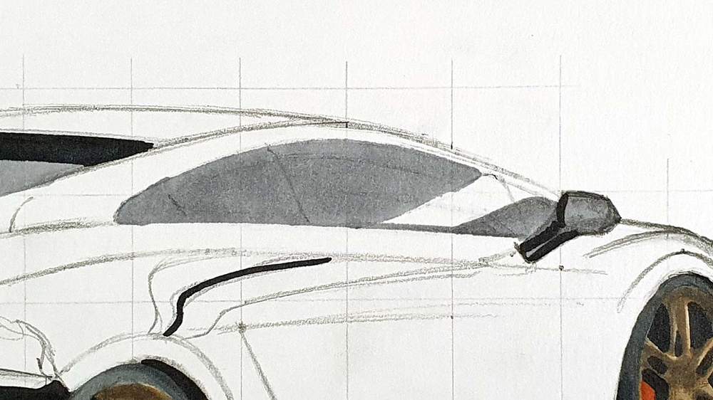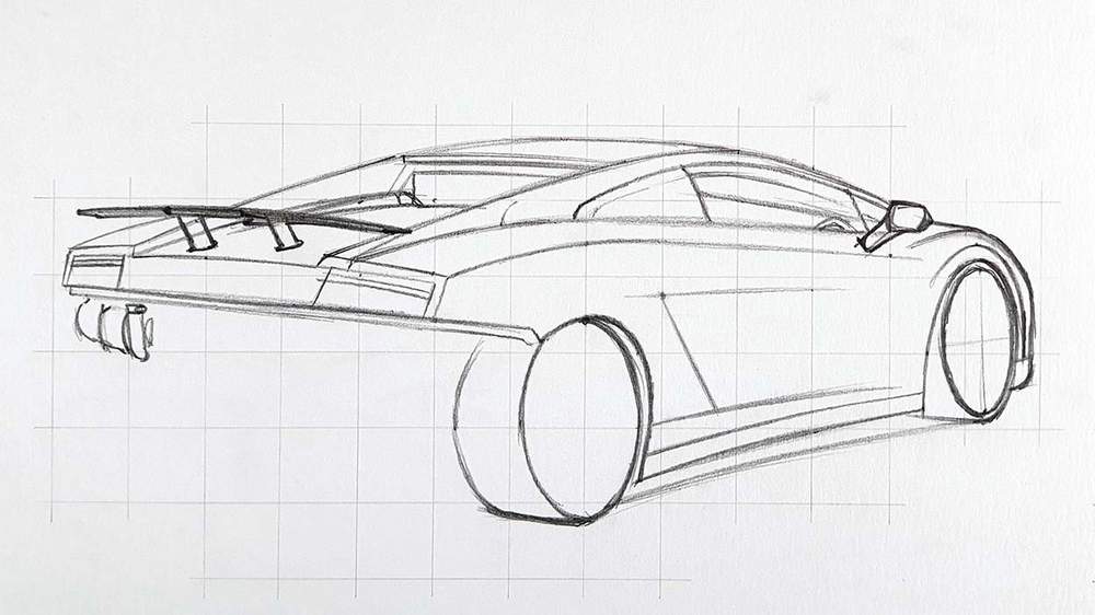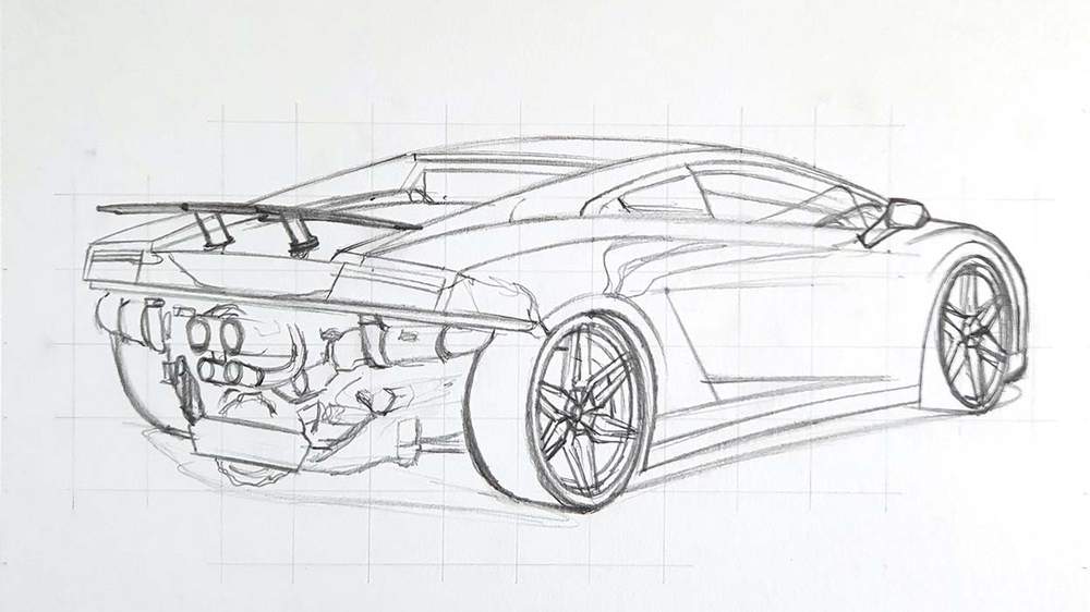 I first started by sketching the outline of the Lamborghini and for that, I used the grid method to make it a lot easier. However, if you don't like using this method, there are other techniques you can use, or you can freehand your sketch.