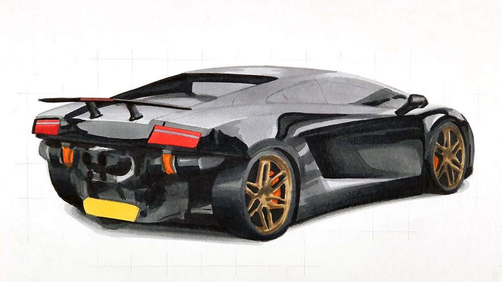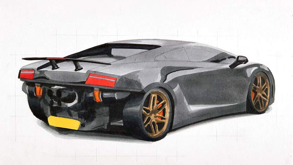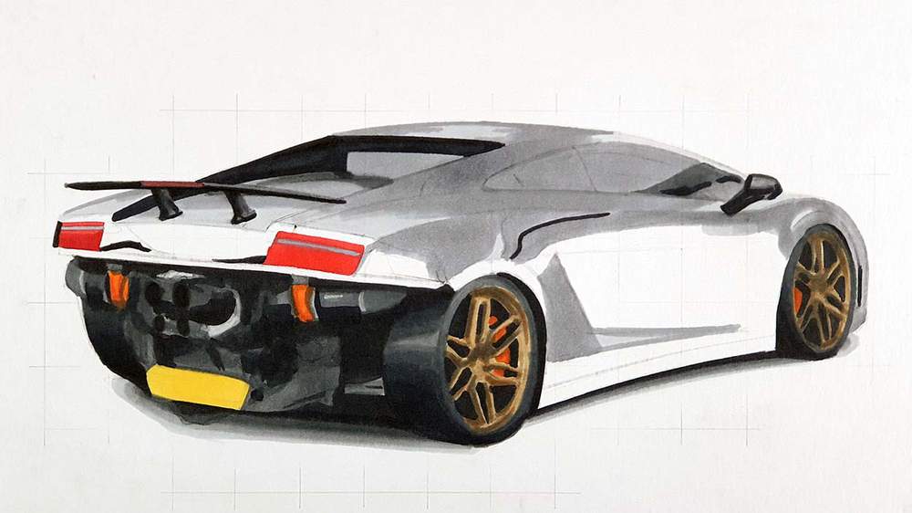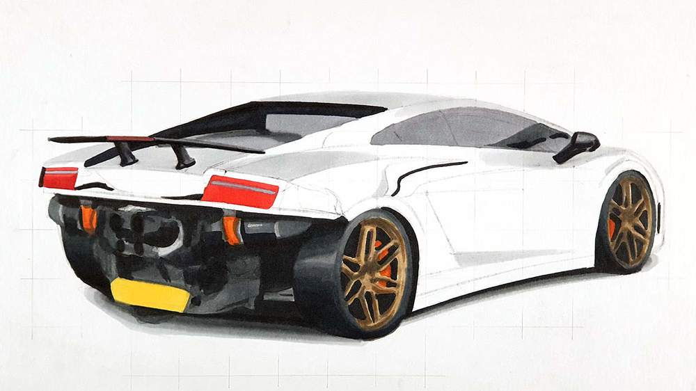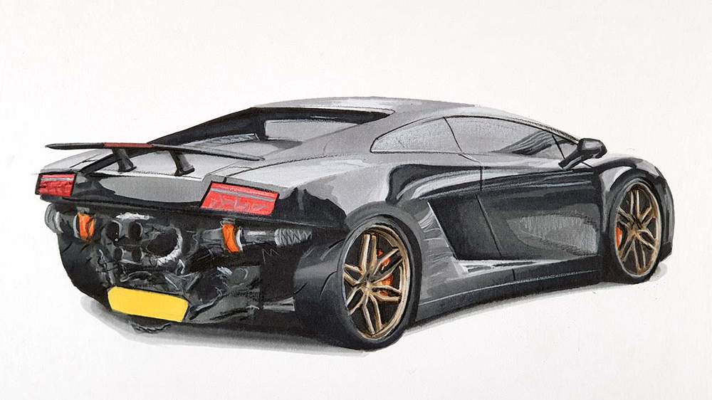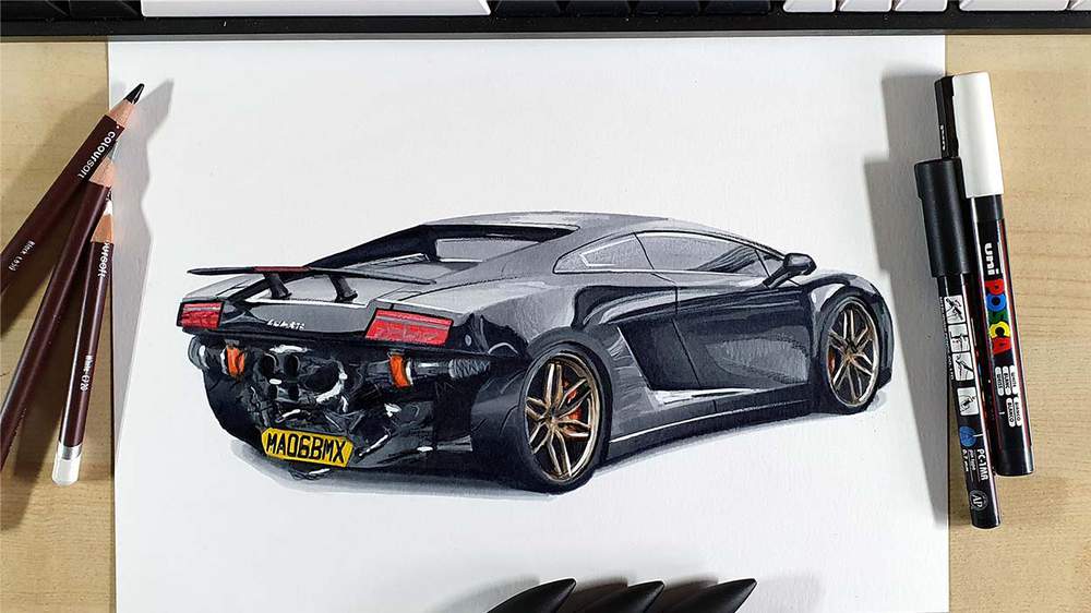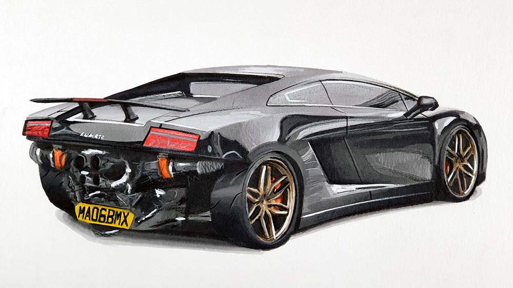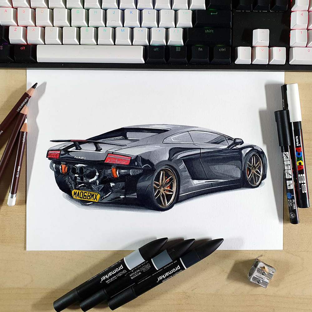 To draw Mat's Twin Turbo Lamborghini Gallardo, I used the following art supplies: