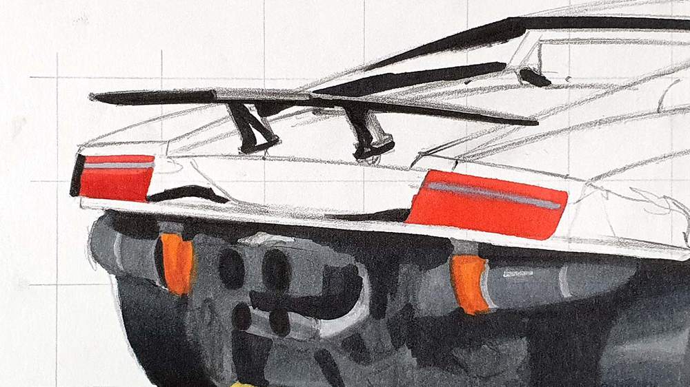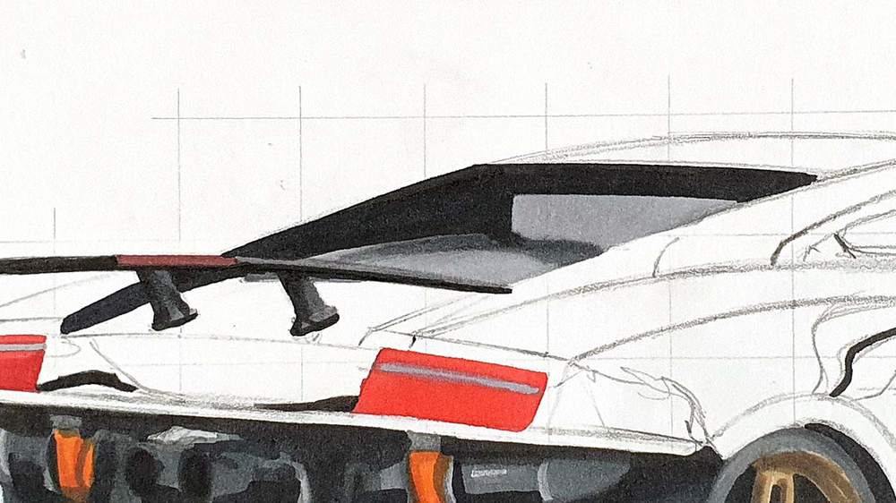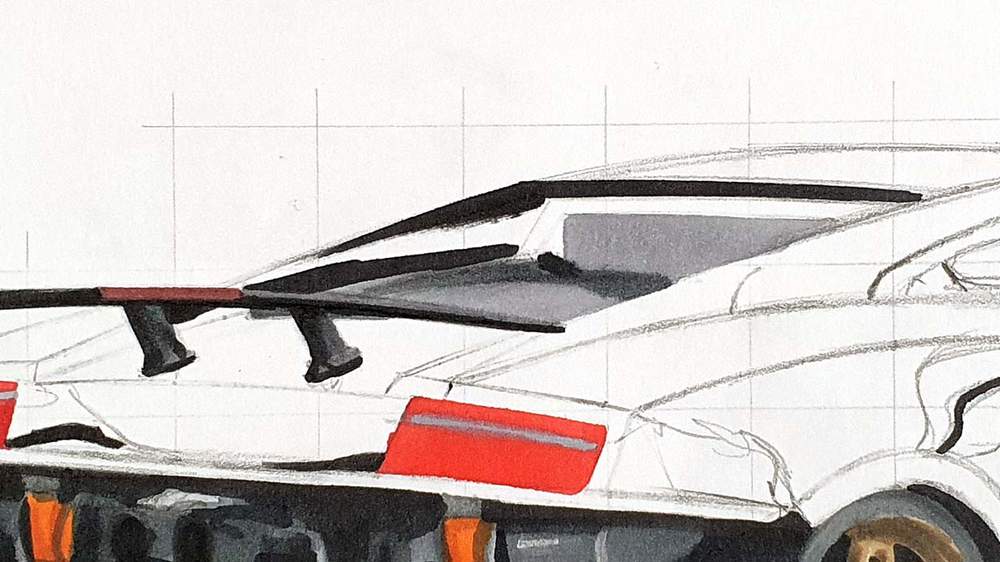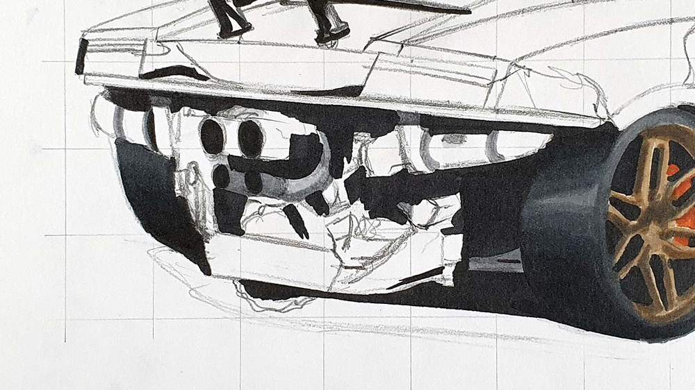 I also use the pencils to add the panel gaps and a few more details all over the car.