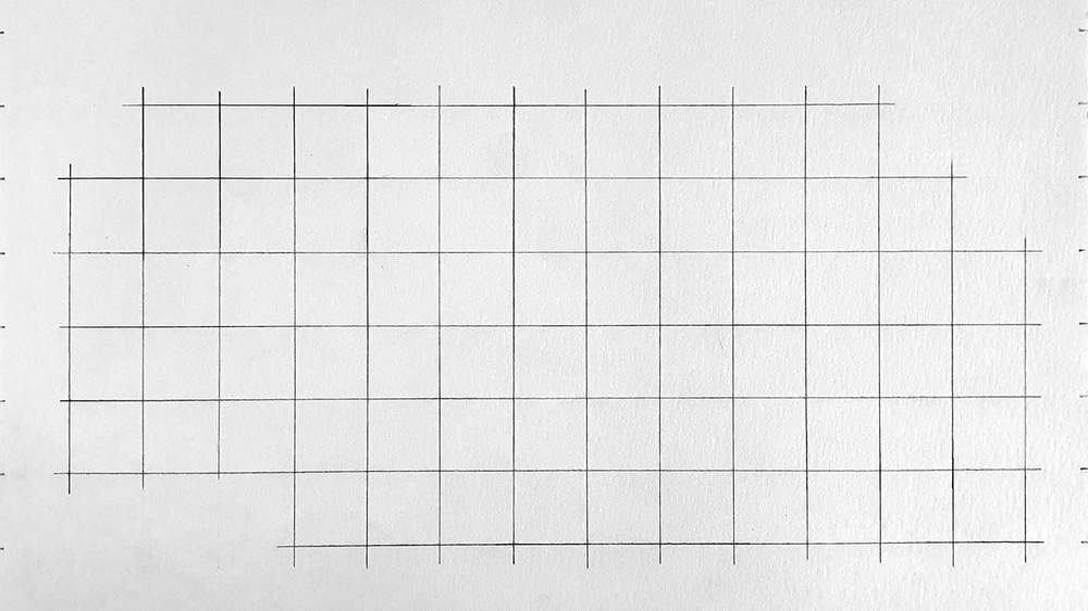 Next, I sketched the same grid on my A4-sized piece of paper. The squares on the grid are 2 by 2 cm in this case.