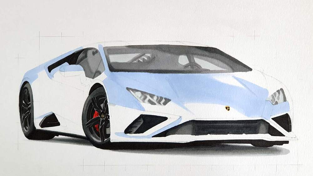 There are plenty of workflows to create realistic drawings of cars like the Lamborghini Huracán Evo, but the way I described in this article works very well for me and it's a great balance between time spent on the drawing and how realistic it looks.