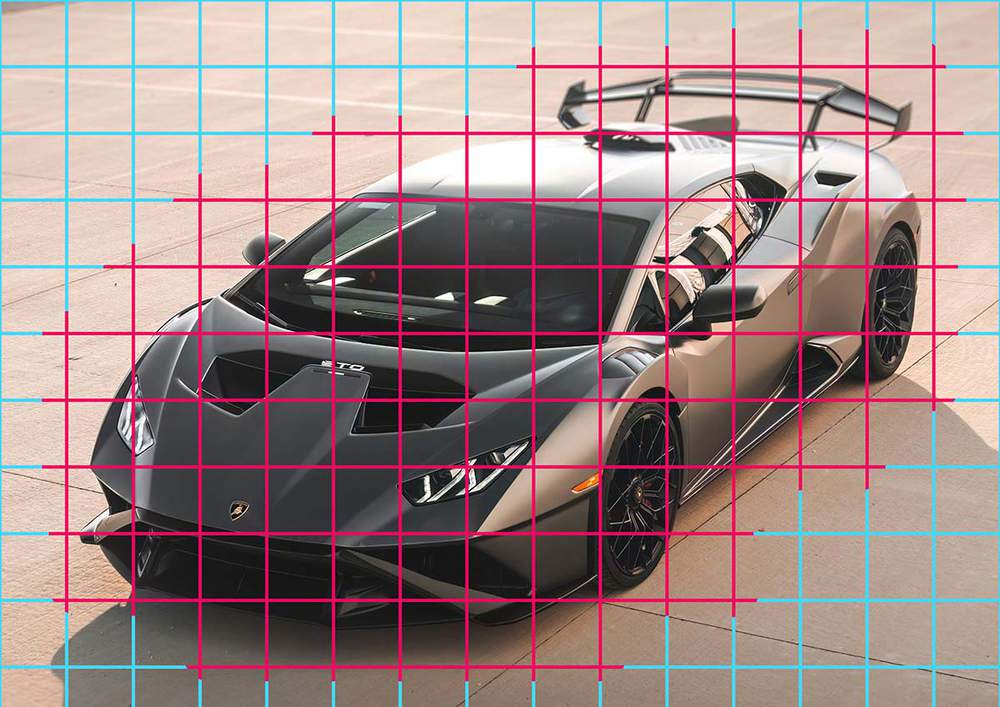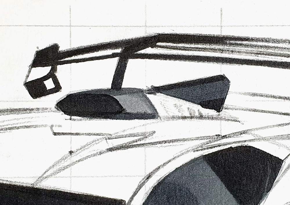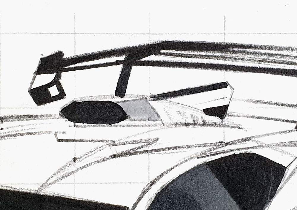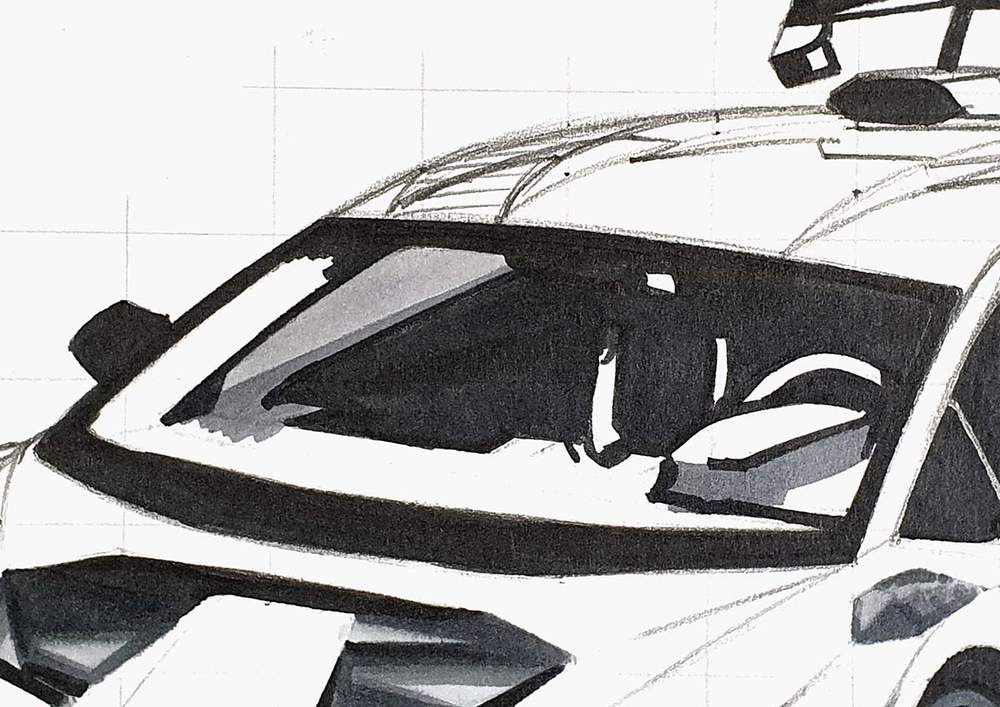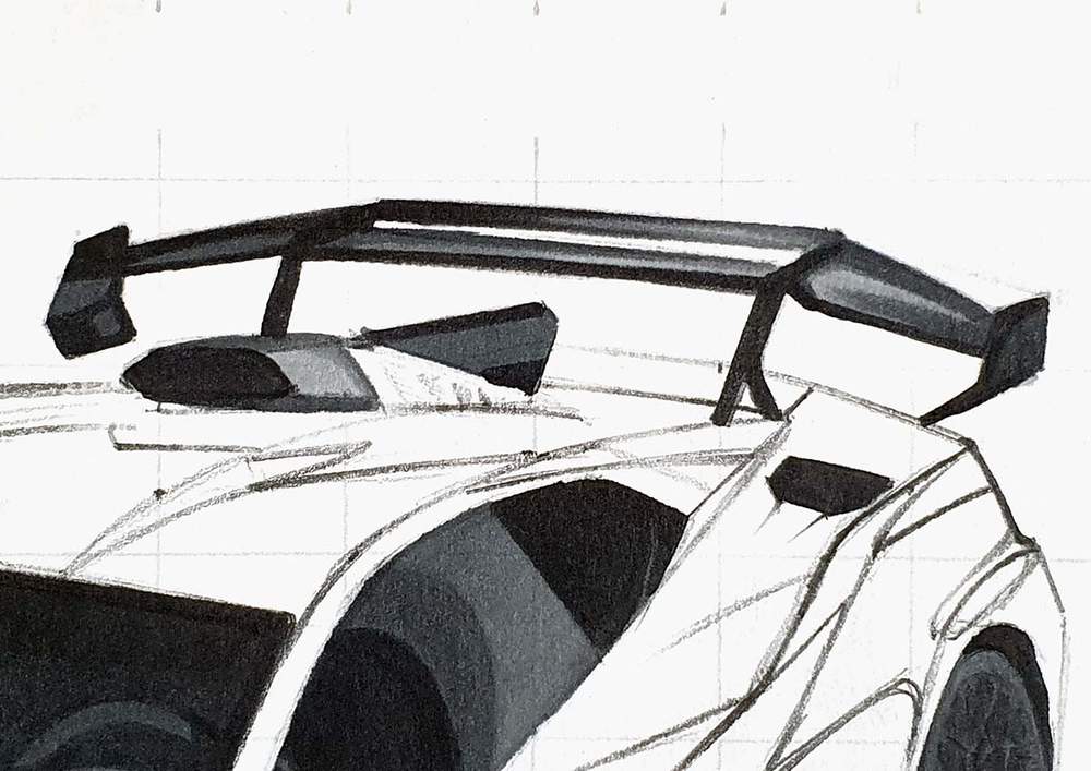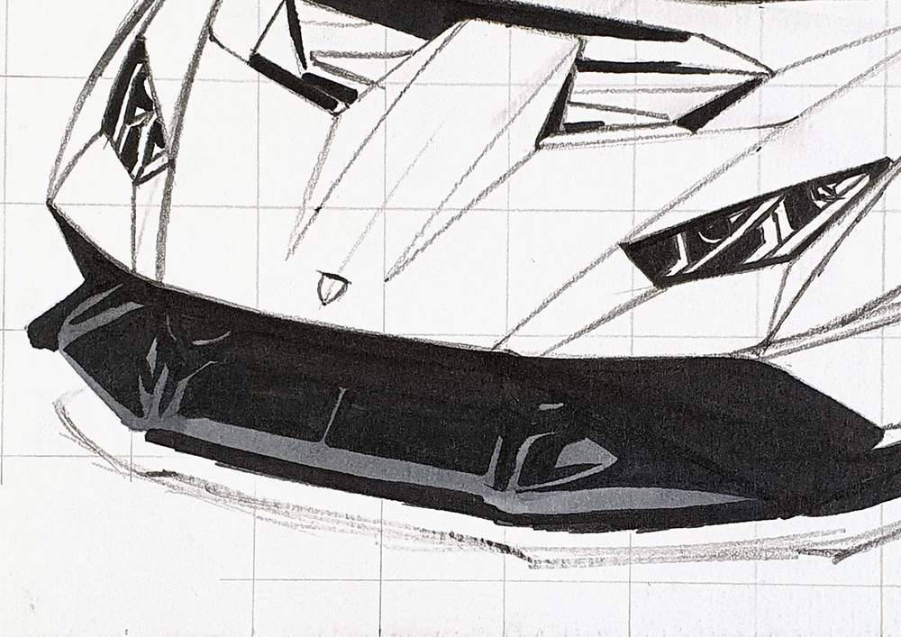 To sketch the outline of the Lamborghini Huracan STO, I like to use the grid method. This technique makes sketching cars' proportions accurately a lot easier. Here's a more in-depth tutorial on how to use this technique.