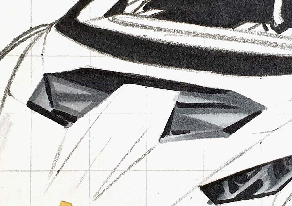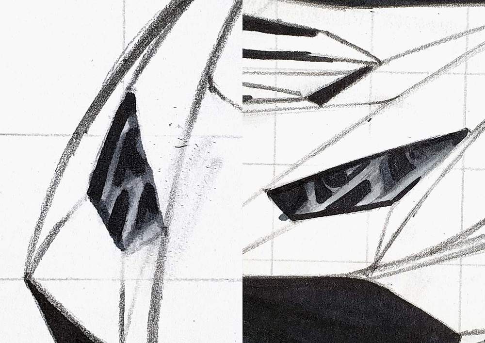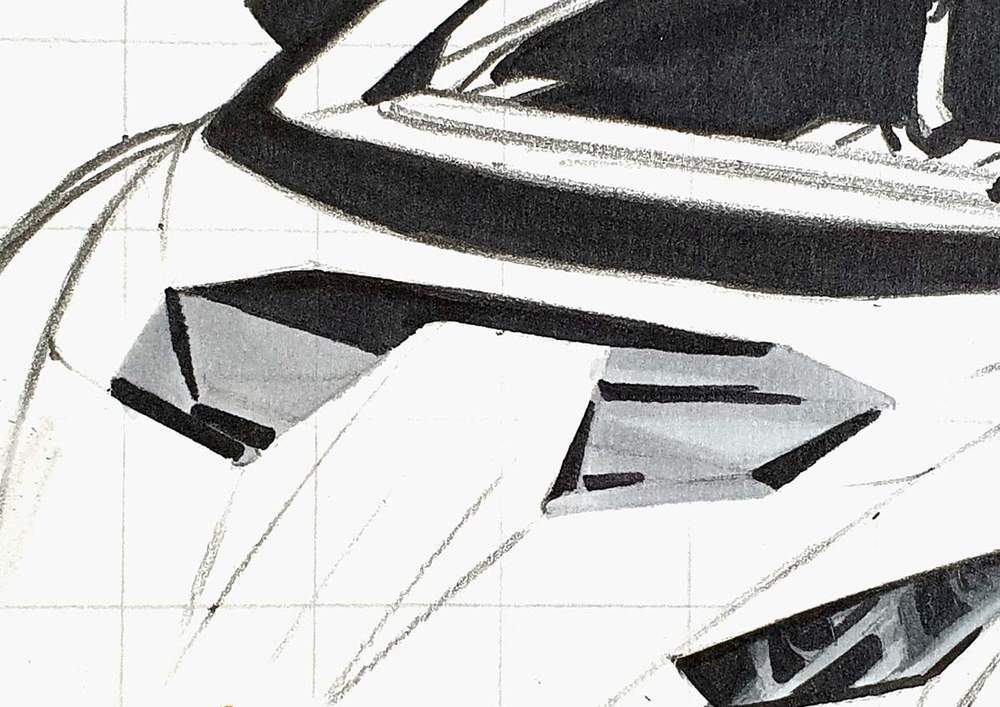 6. Sketch the details of the car like the inside of the headlight and the front splitter aero parts.
