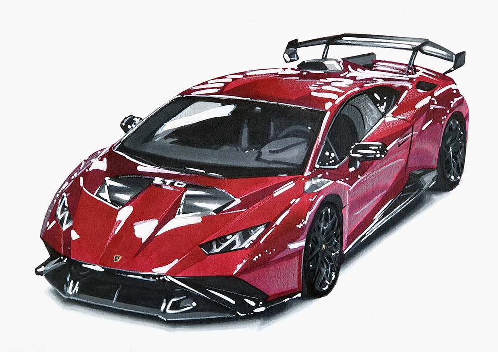 In this week's car drawing tutorial, I'm going to show you how to draw a Lamborghini Huracan STO in this beautiful magentaish color called Viola Bast.
