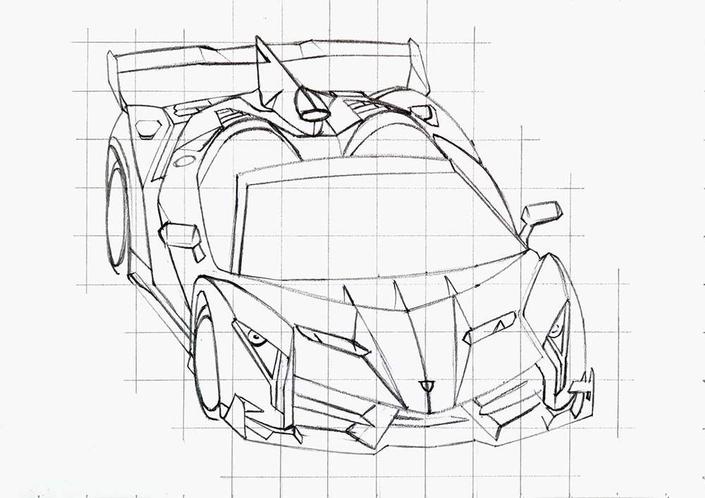 Step 1: Sketch the Outline of the Lamborghini Veneno Roadster