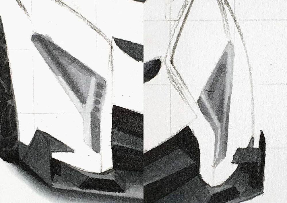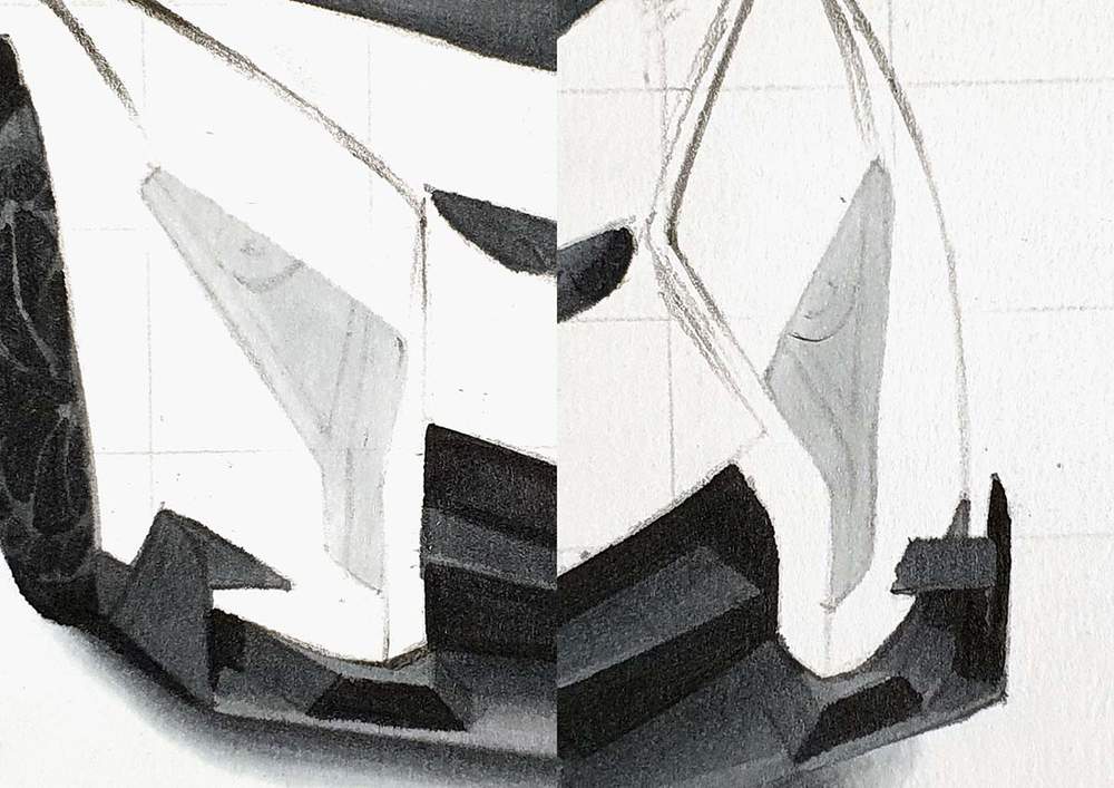 To make this drawing of the Lamborghini Veneno, I used 2 reference photos. 1 for the proportions and the perspective and 1 for the lighting and the reflections.