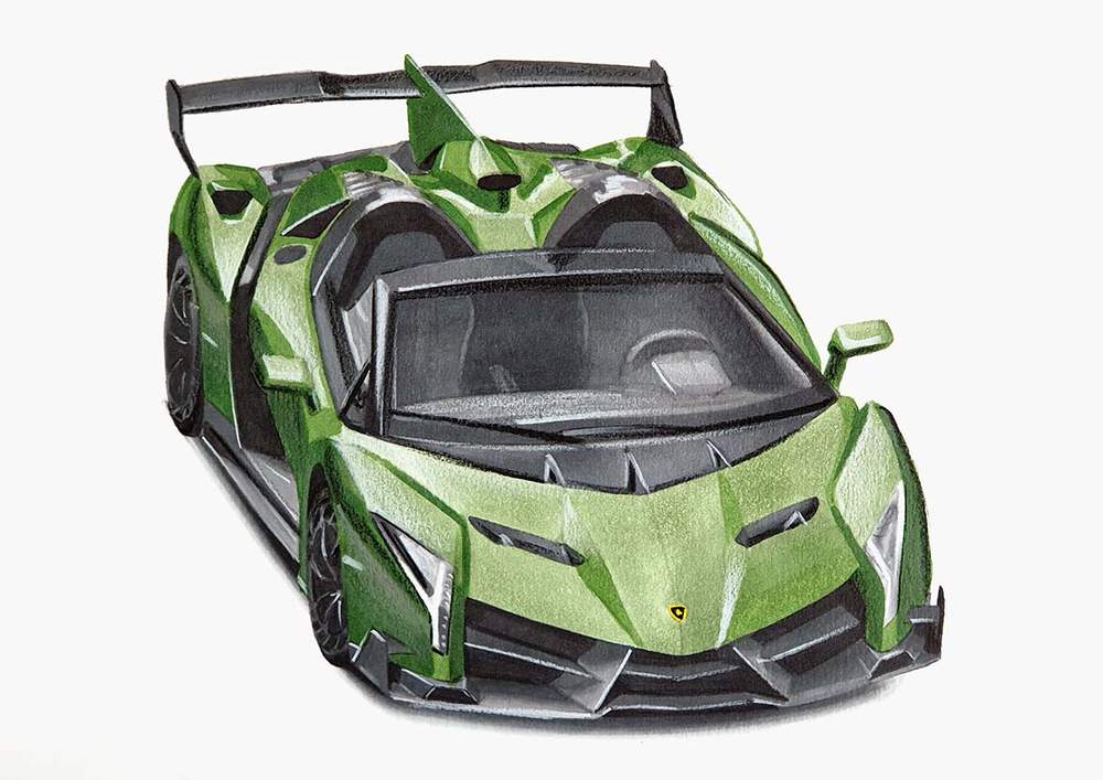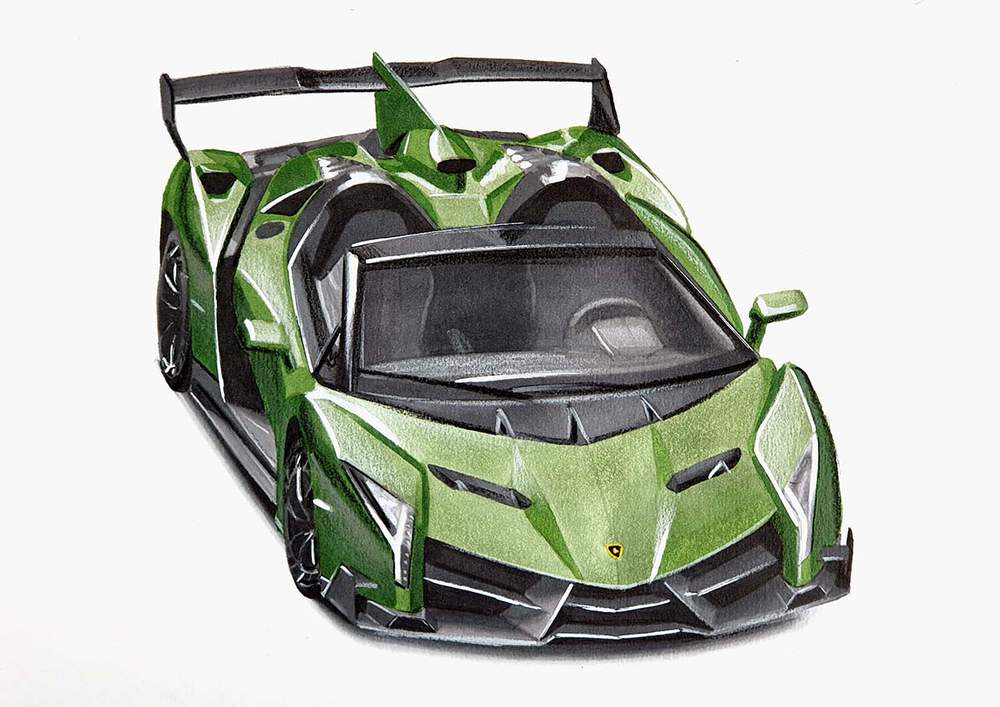 In this week's car drawing tutorial, I'll show you how to draw a Lamborghini of all Lamborghinis: the Veneno Roadster!