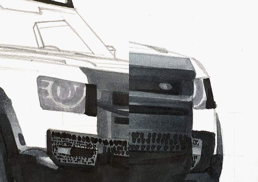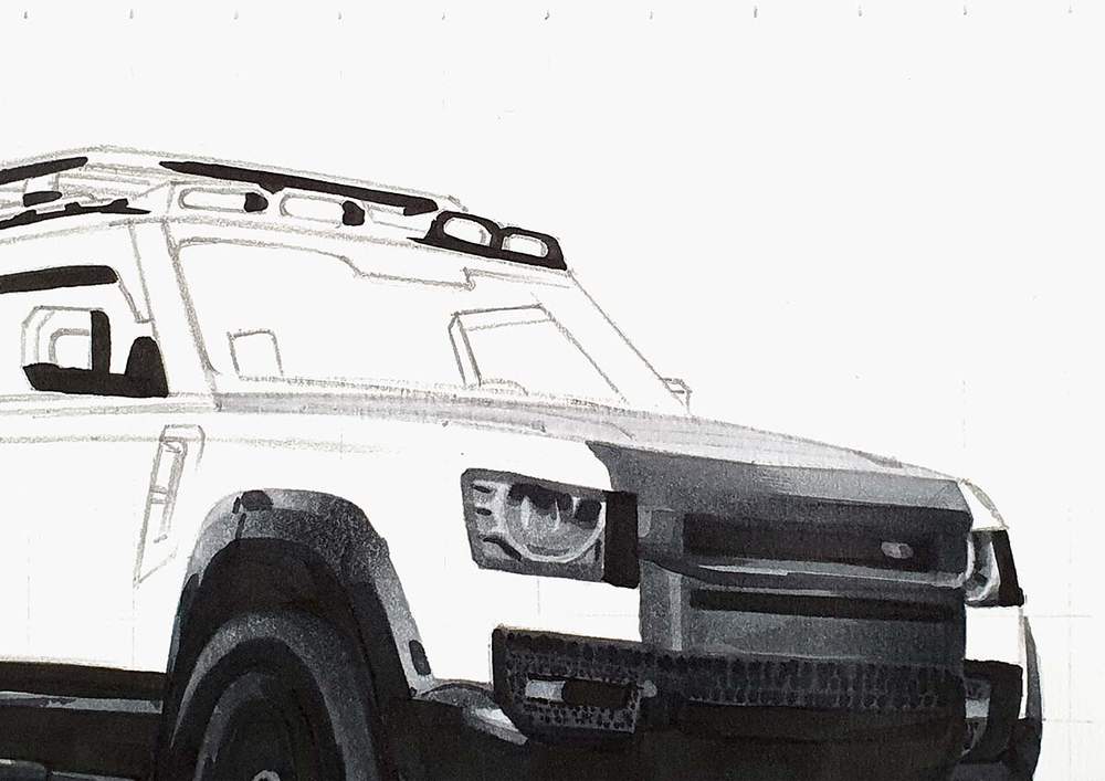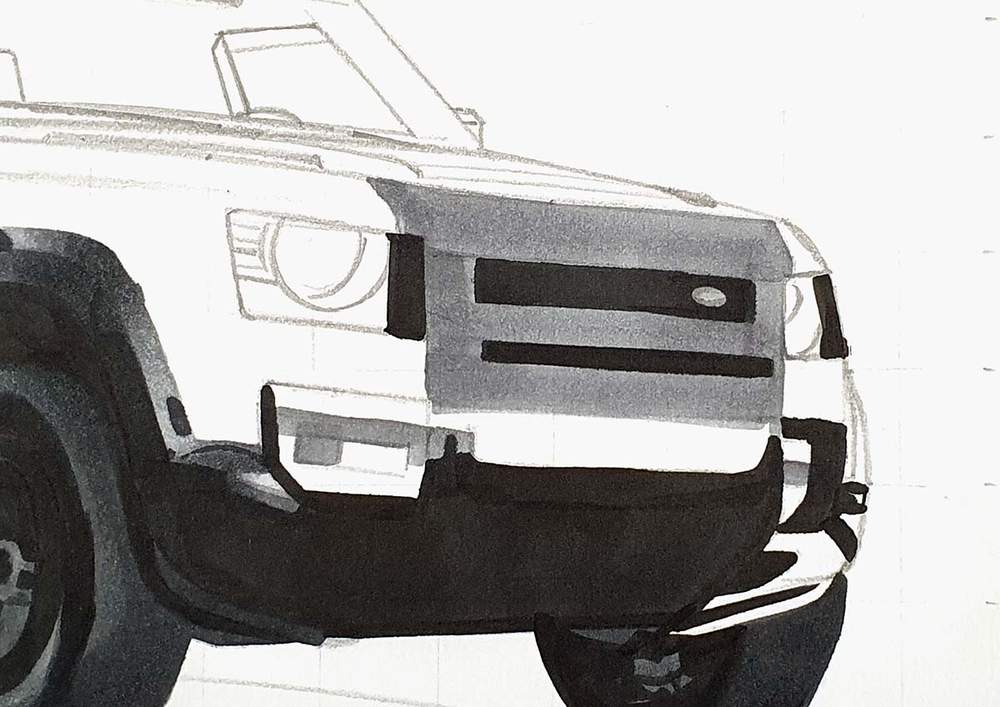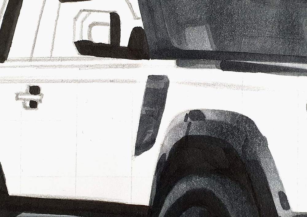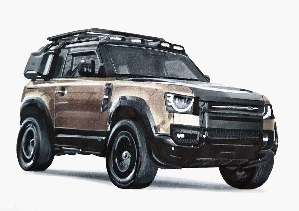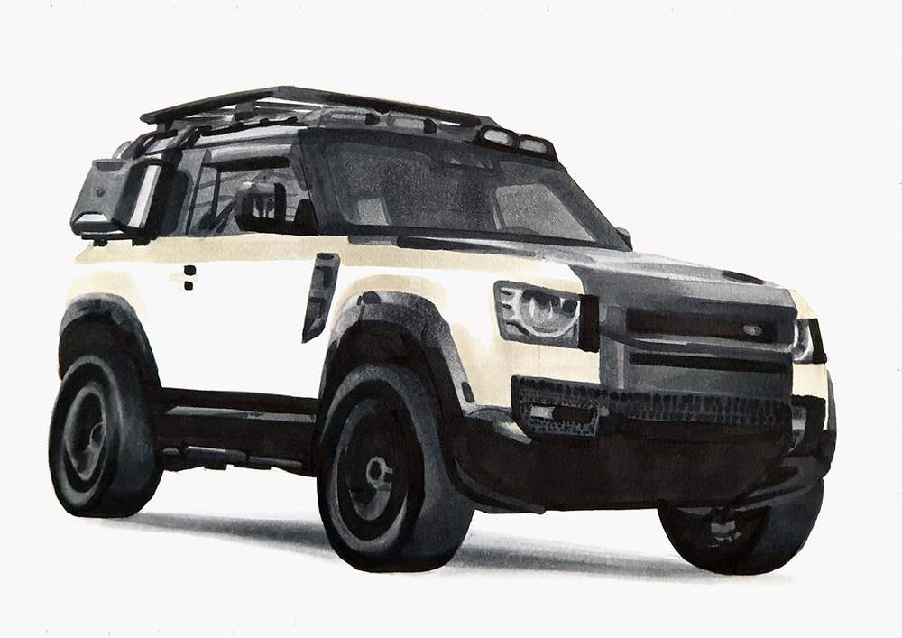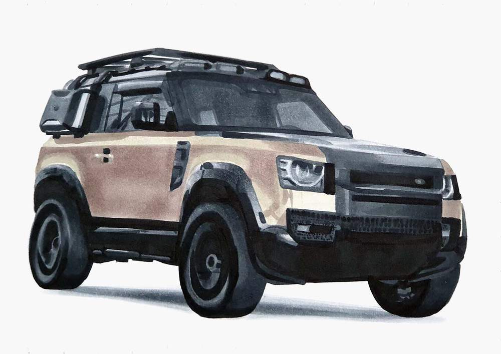 In this week's car drawing tutorial, I'm going to show you step-by-step how I drew this beautiful rolling shot of a Land Rover Defender.