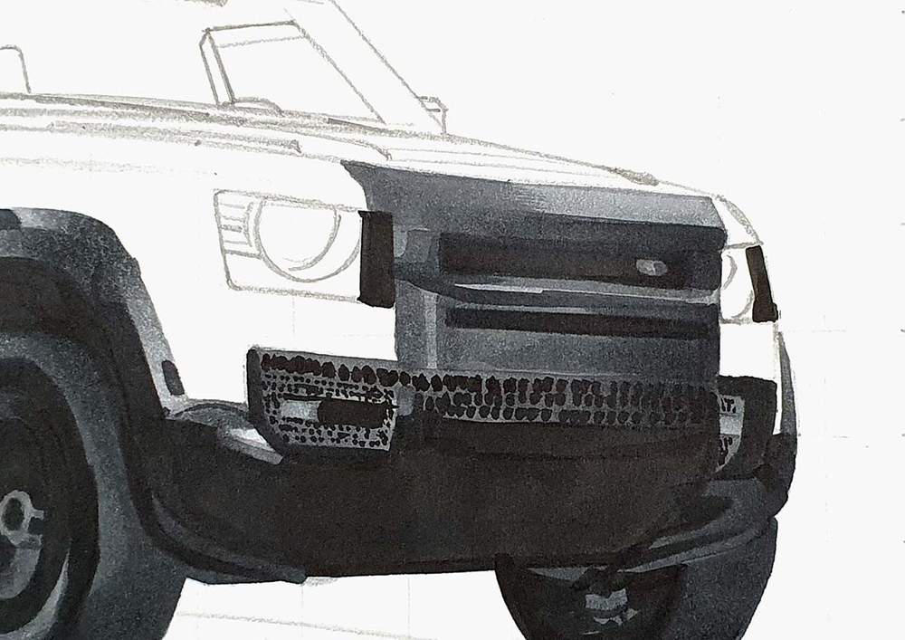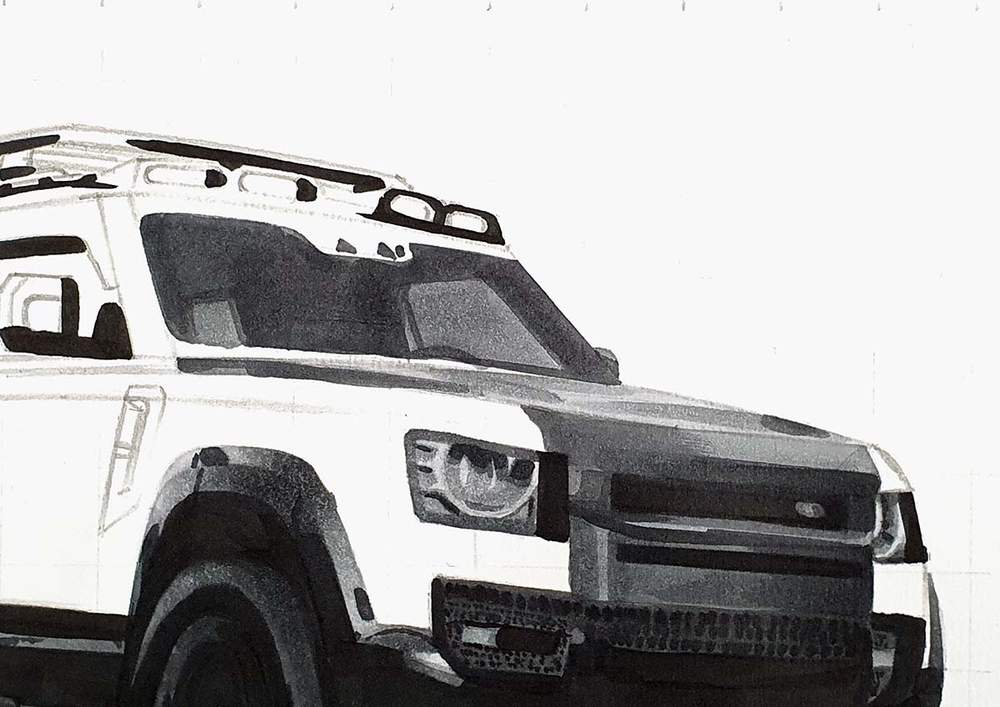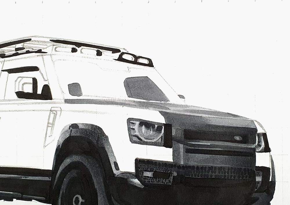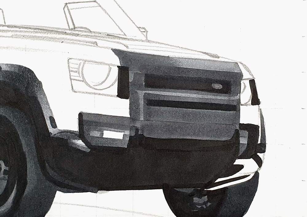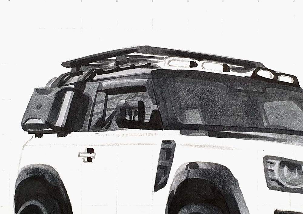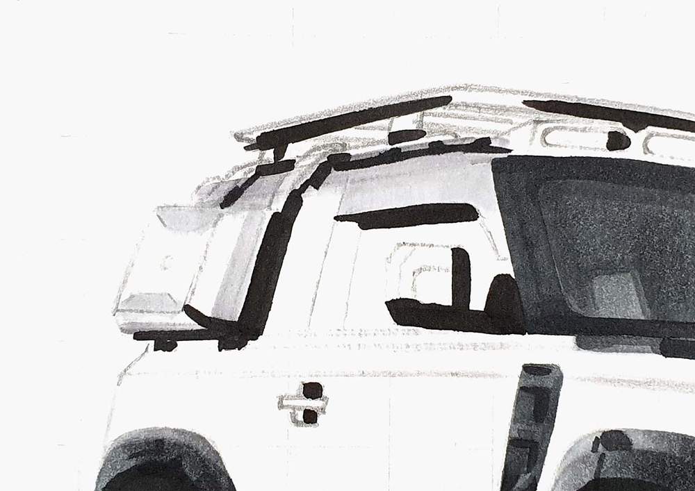 In this week's car drawing tutorial, I'm going to show you step-by-step how I drew this beautiful rolling shot of a Land Rover Defender.