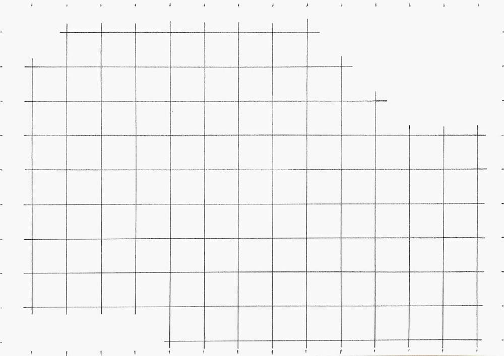 Next, I recreated that same grid on my paper. Each square is 2 by 2 cm, and I only sketched the squares marked in red.