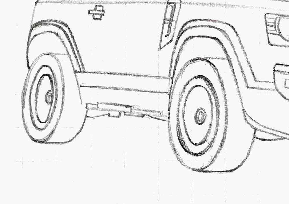 Step 4: Sketch The Wheels Of The Land Rover Defender