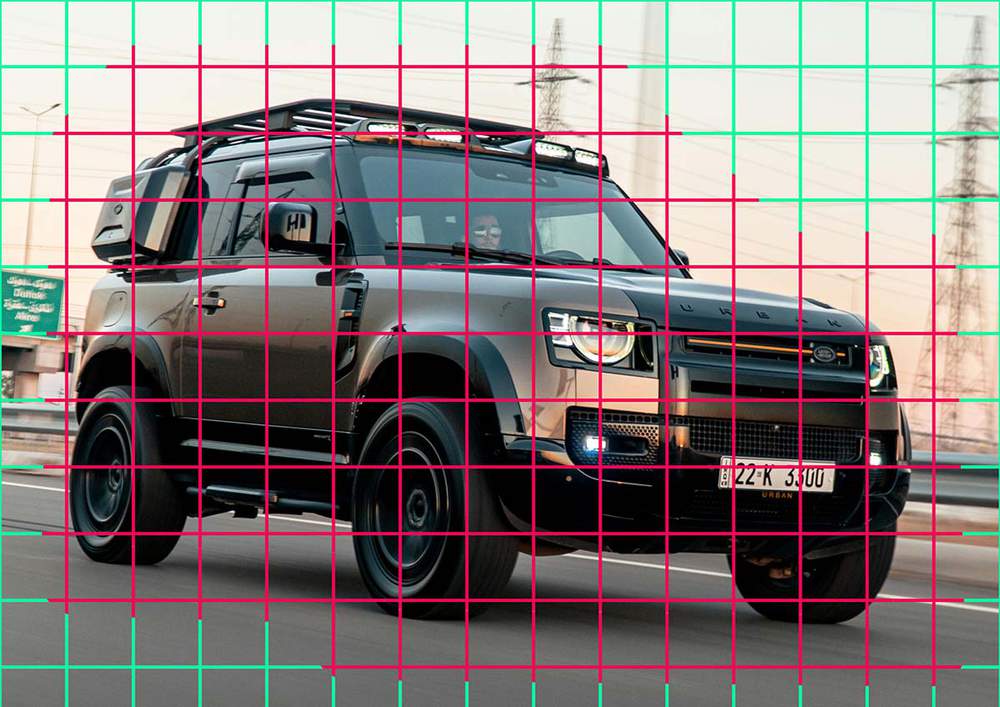 Then, I added a grid overlay and I marked the squares with parts of the car in it in red.