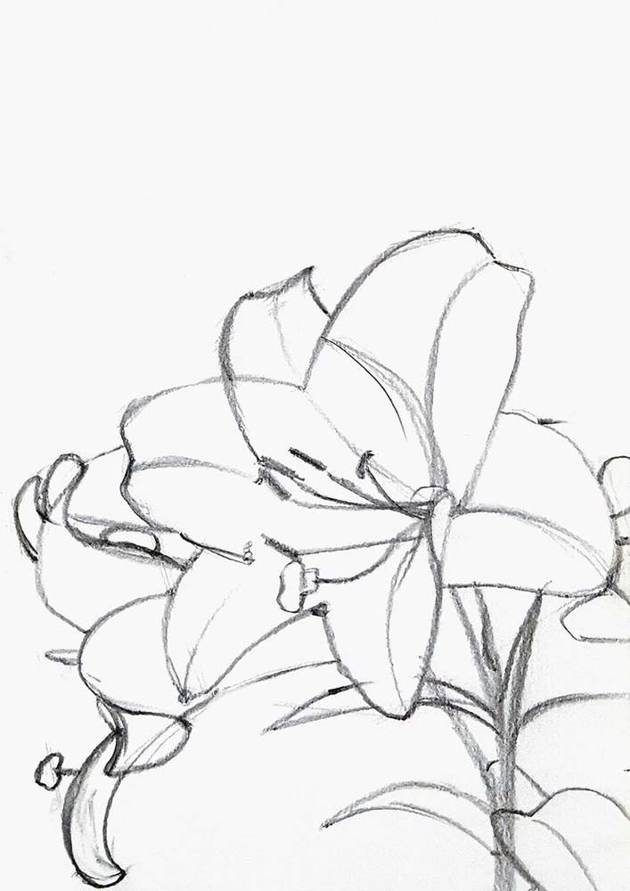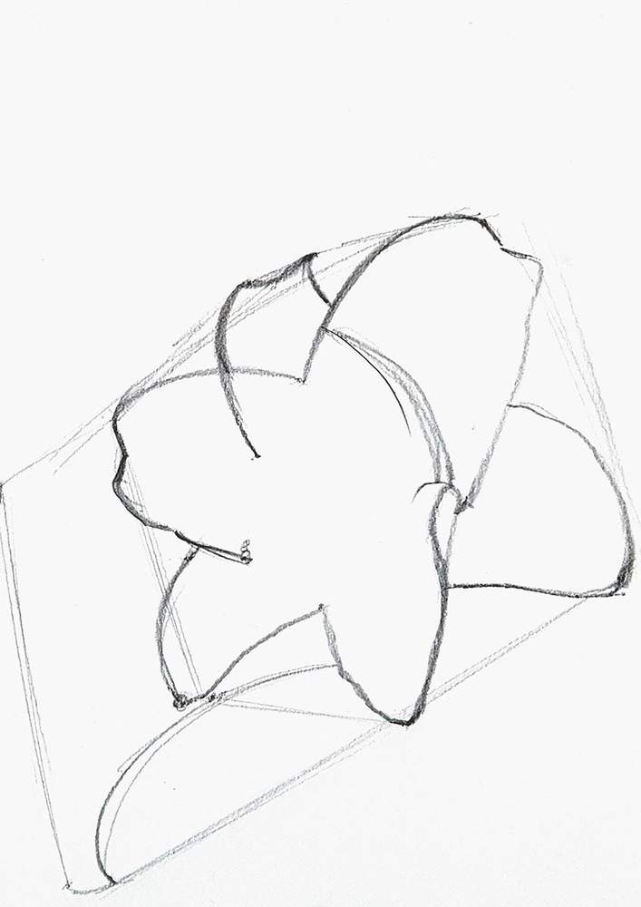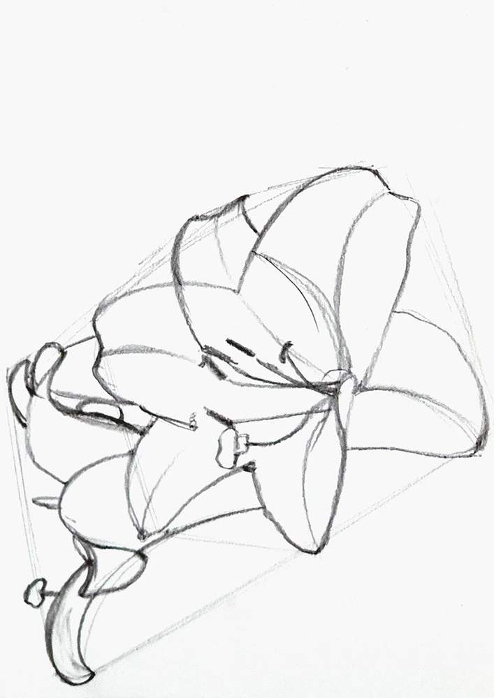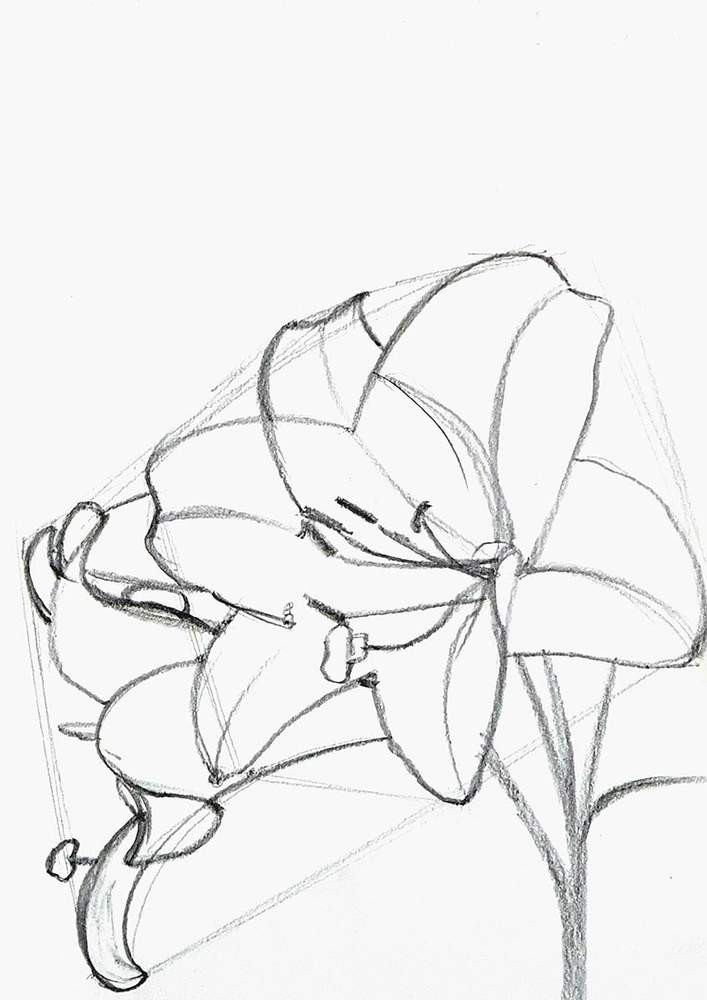 To sketch the lily flowers, I first sketched a sort of rectangular box shape around the flowers.