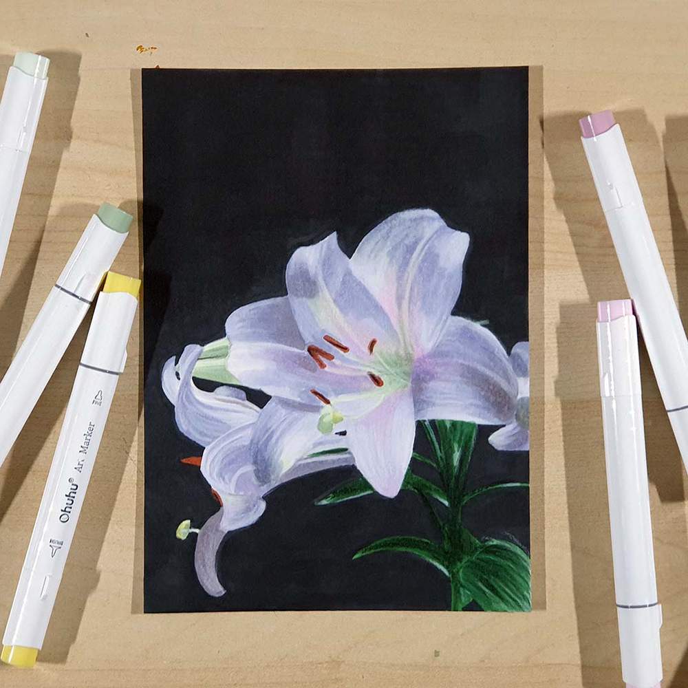 My go-to alcohol markers for blending, rich color payoff, and amazing value. The brush tips feel super natural to draw with — a must-have for smooth gradients and realistic shading!