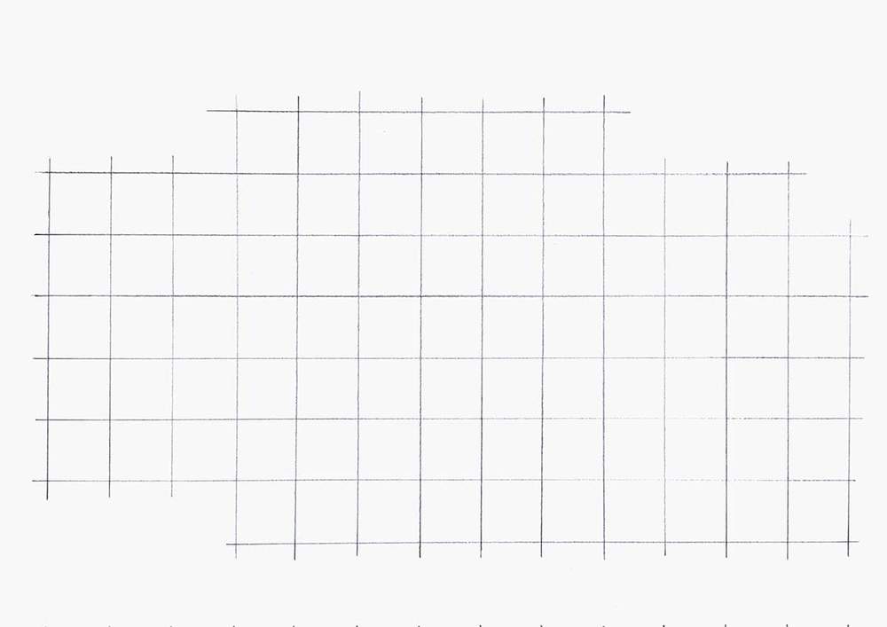 The grid I used is 15 by 10.5 squares resulting in squares of 2 by 2cm. Each grid line is 2 cm apart starting from the top left.
