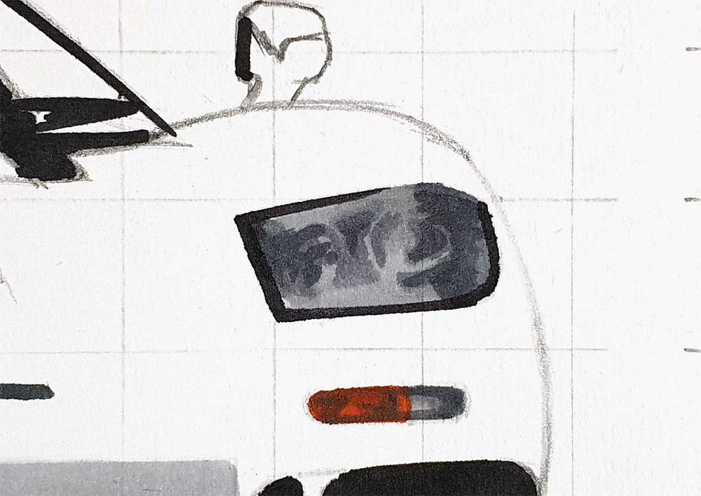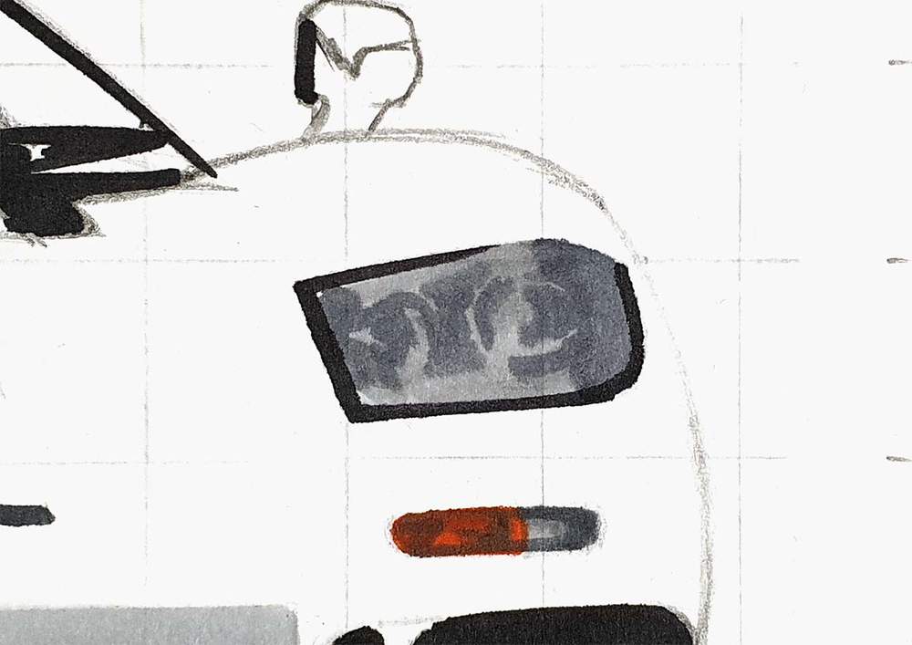 I used the white pencil to add a ton of reflections on the car, mainly on the front.